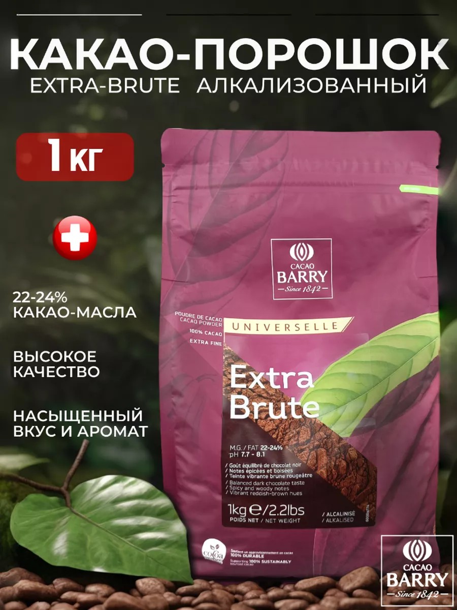 | Комплектация | Какао-порошок Exrta-Brute 22-24%, темно-красный, упаковка 1 кг |