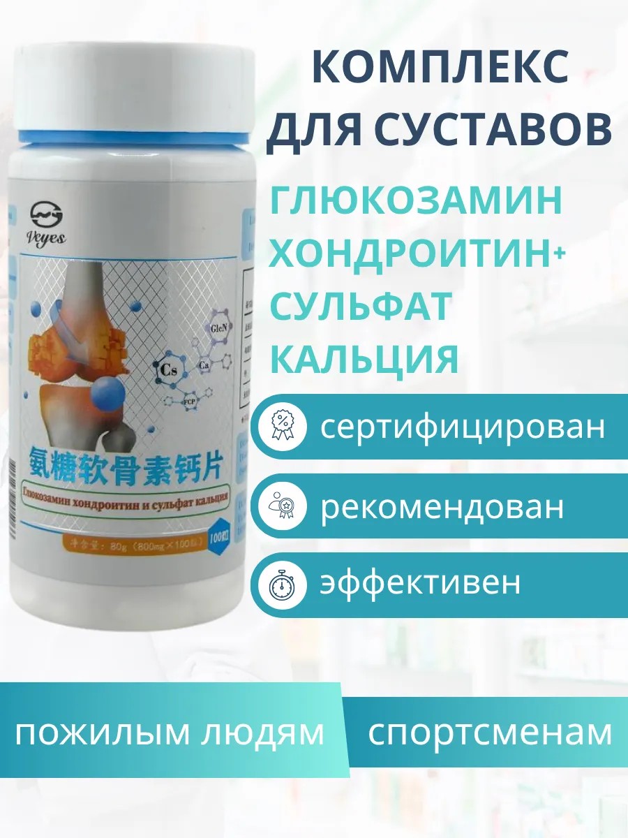 Пищевая добавка с глюкозамином хондроитином и сульфатом кальция — эффективный комплекс для здоровья суставов и костей, созданный по передовым технологиям. Этот биологически активный комплекс рекомендован для поддержания подвижности суставов, укрепления хрящевой ткани и профилактики возрастных изменений опорно-двигательной системы.
