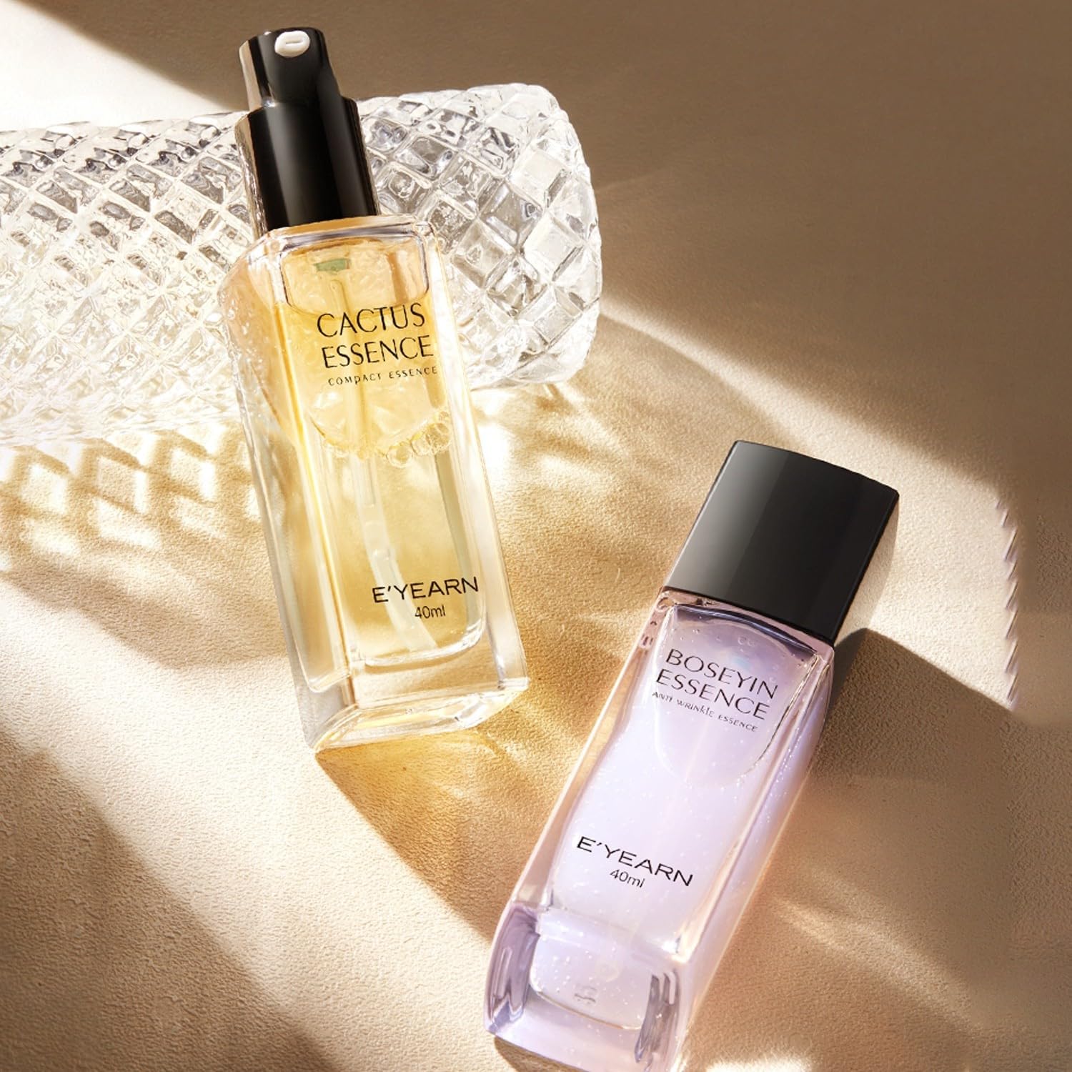 Discover E'YEARN's innovative Cactus Essence facial serum, a powerful 40ml anti-aging solution that harnesses the remarkable properties of cactus extract and advanced skincare technology. This lightweight, water-textured serum features precious ingredients that maintain high moisture content while creating a strong, resilient skin barrier. The formula combines cactus essence with ascorbic acid to revitalize your skin's youthful potential and effectively repair damaged skin barriers. Enhanced with matsutake extract, this serum helps mediate skin microbiota and remove old keratin, revealing fresher, more vibrant skin. The fast-absorbing formula delivers deep hydration without feeling heavy or greasy, making it perfect for daily use. Its unique blend of ingredients works harmoniously to address multiple signs of aging, including fine lines and uneven texture, while providing essential moisture to maintain skin's natural balance. Experience the transformative power of desert-inspired skincare with this premium facial serum that combines ancient botanical wisdom with modern skincare science.