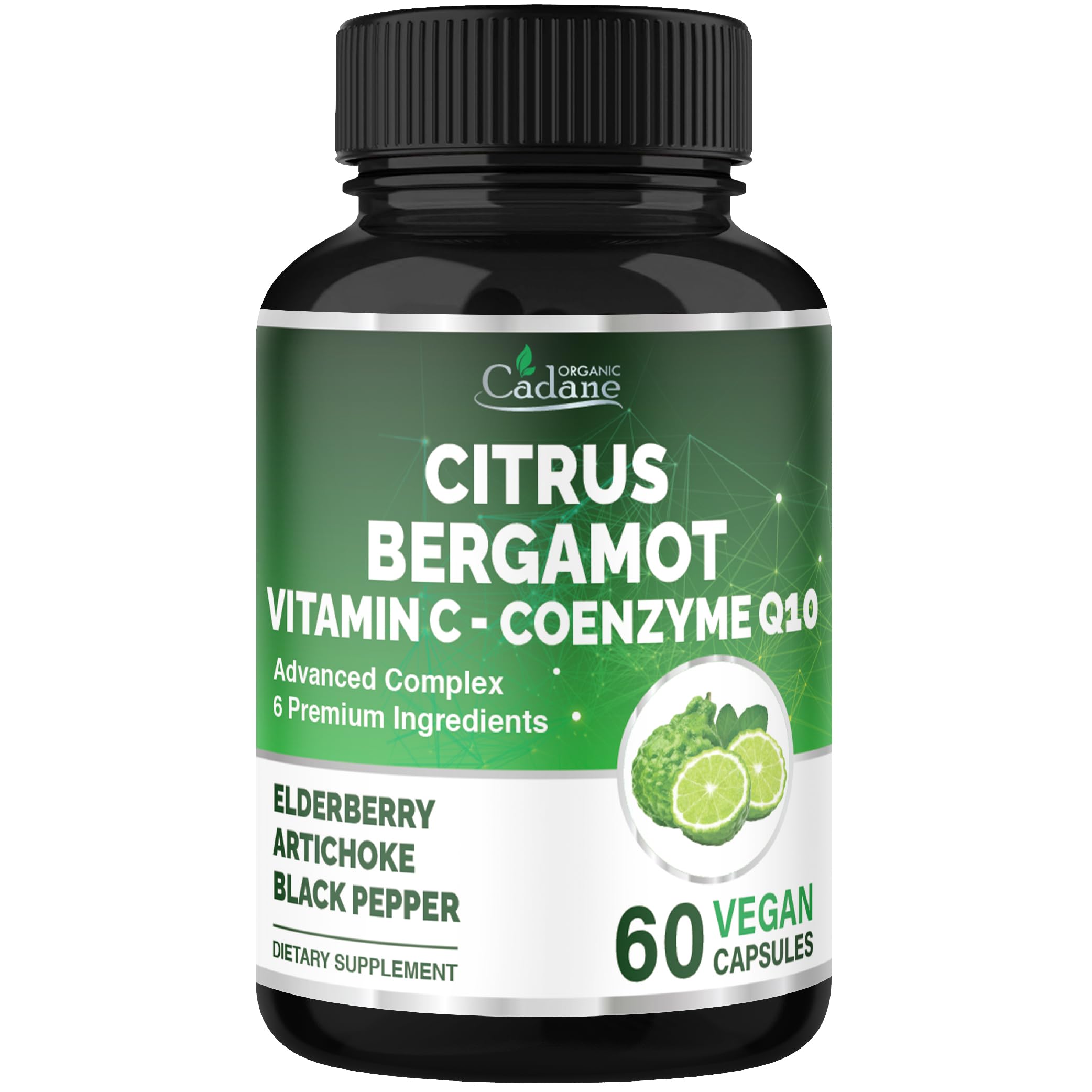 Cadane Citrus Bergamot Supplement with Vitamin C CoQ10 Elderberry Artichoke & Black Pepper | Heart & Wellness Support | Vegan Non-GMO 60 Capsules 30-Day Supply