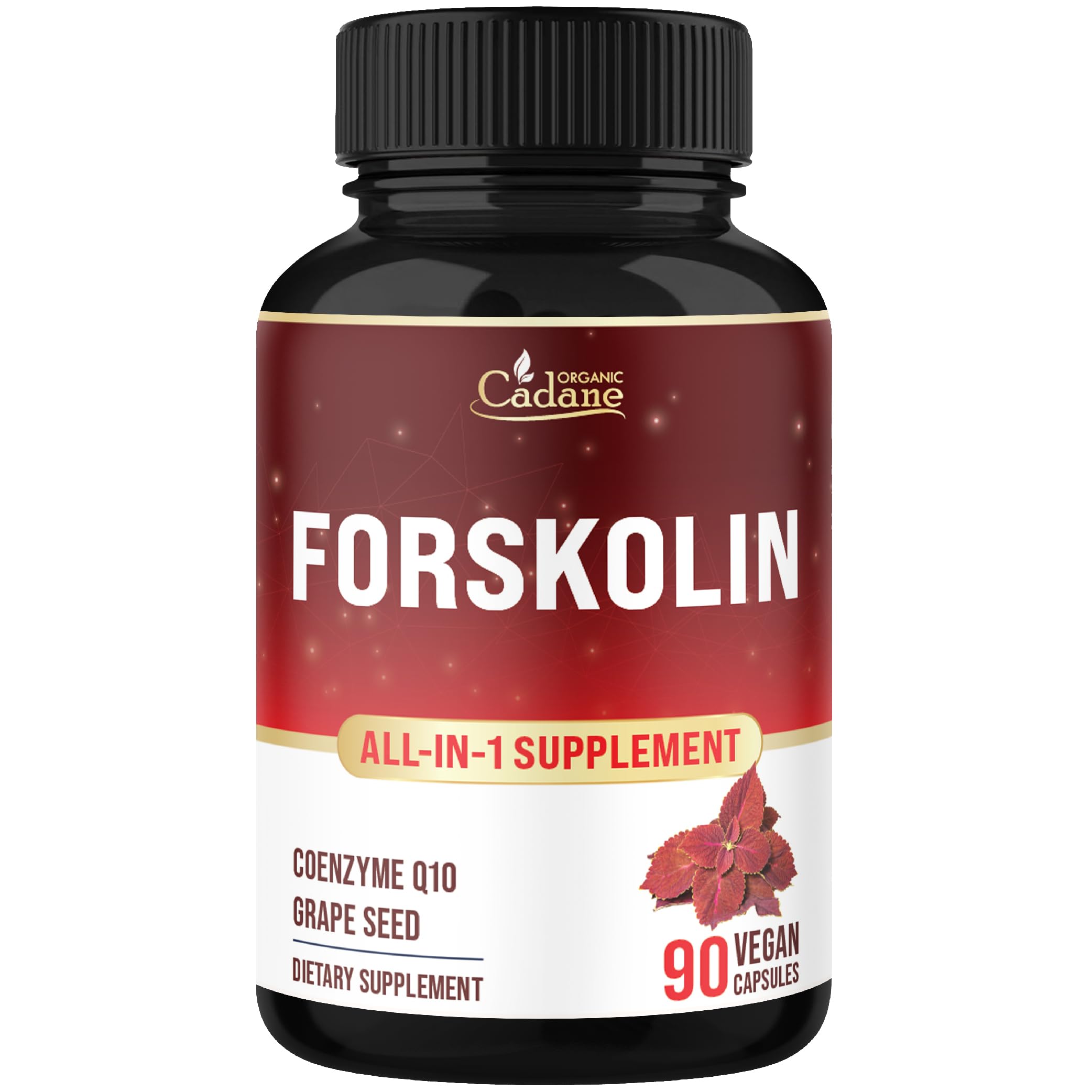 Cadane Forskolin Supplement with Coenzyme Q10 & Grape Seed Extract | Supports Body Management & Energy | Vegan Non-GMO 90 Capsules 45-Day Supply