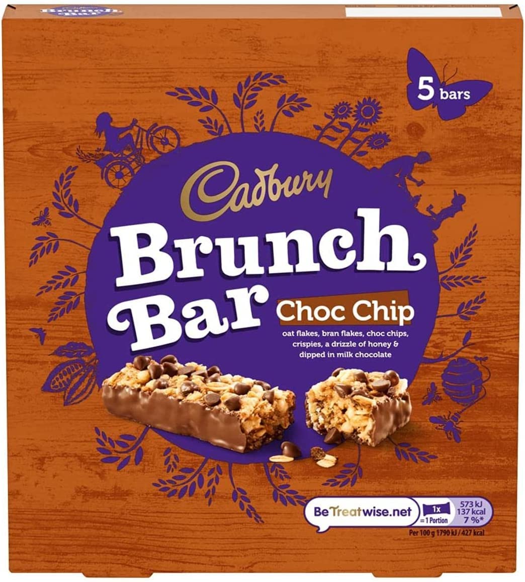 Satisfying: The perfect choice when you're craving something sweet yet wholesome. Perfect blend: Enjoy the delicious combination of nutty and peanut butter flavors in these healthy cereal bars from the Cadbury Brunch range. Multipack: A convenient 5-bar pack so you can stock up on your favorite Cadbury treats for your midday cravings. Ingredients: Made with honey, chocolate chips, and oats – a perfect blend of sweetness and crunch in every bite. Healthy snack: Enjoy 5 x 32g Cadbury Brunch Oats Choc Chip cereal bars, a delicious and nutritious snack to nibble on the go.