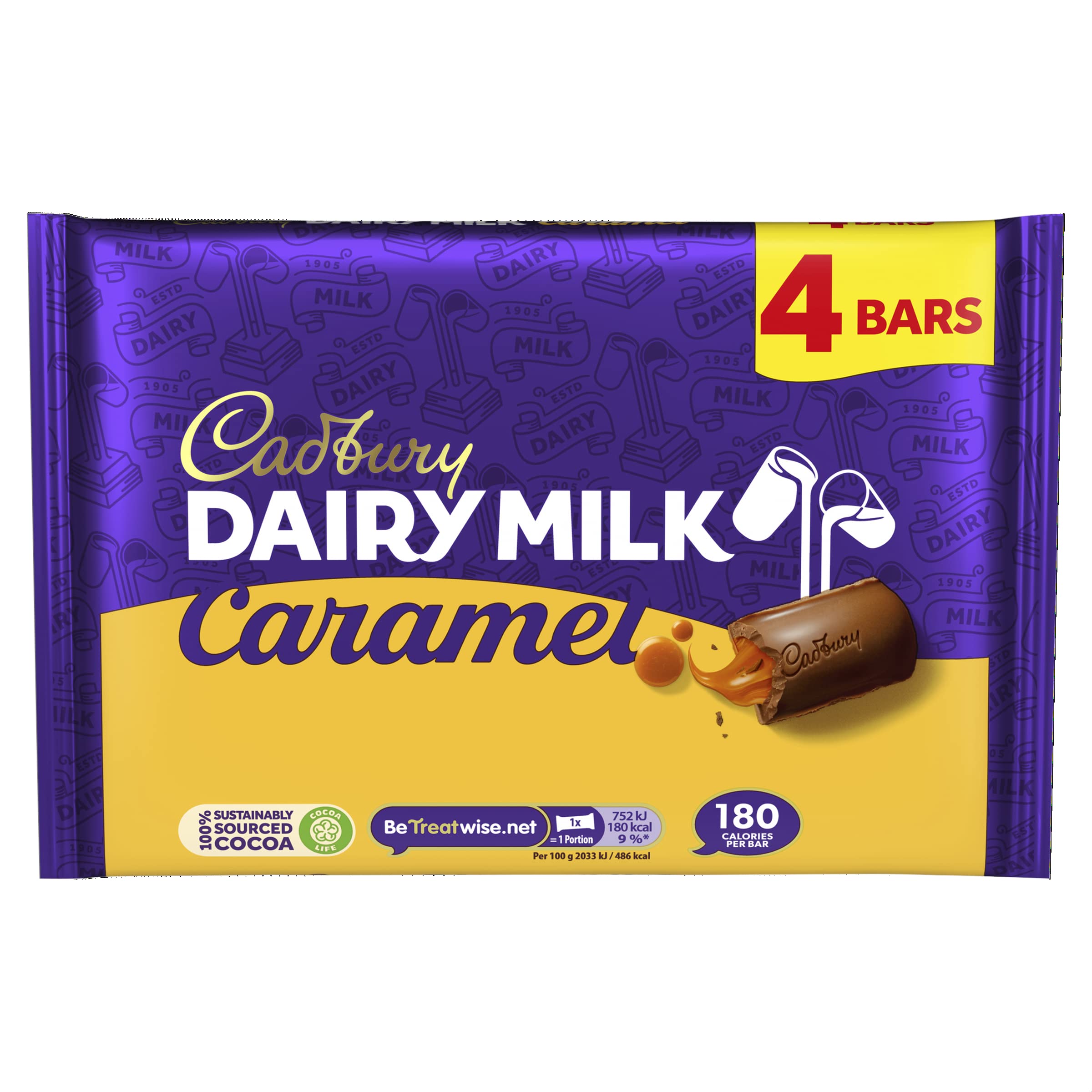 Cadbury Caramel 47687 Lot de 4 boîtes de friandises pour les déplacements Chocolat anglais 4 x 37 g