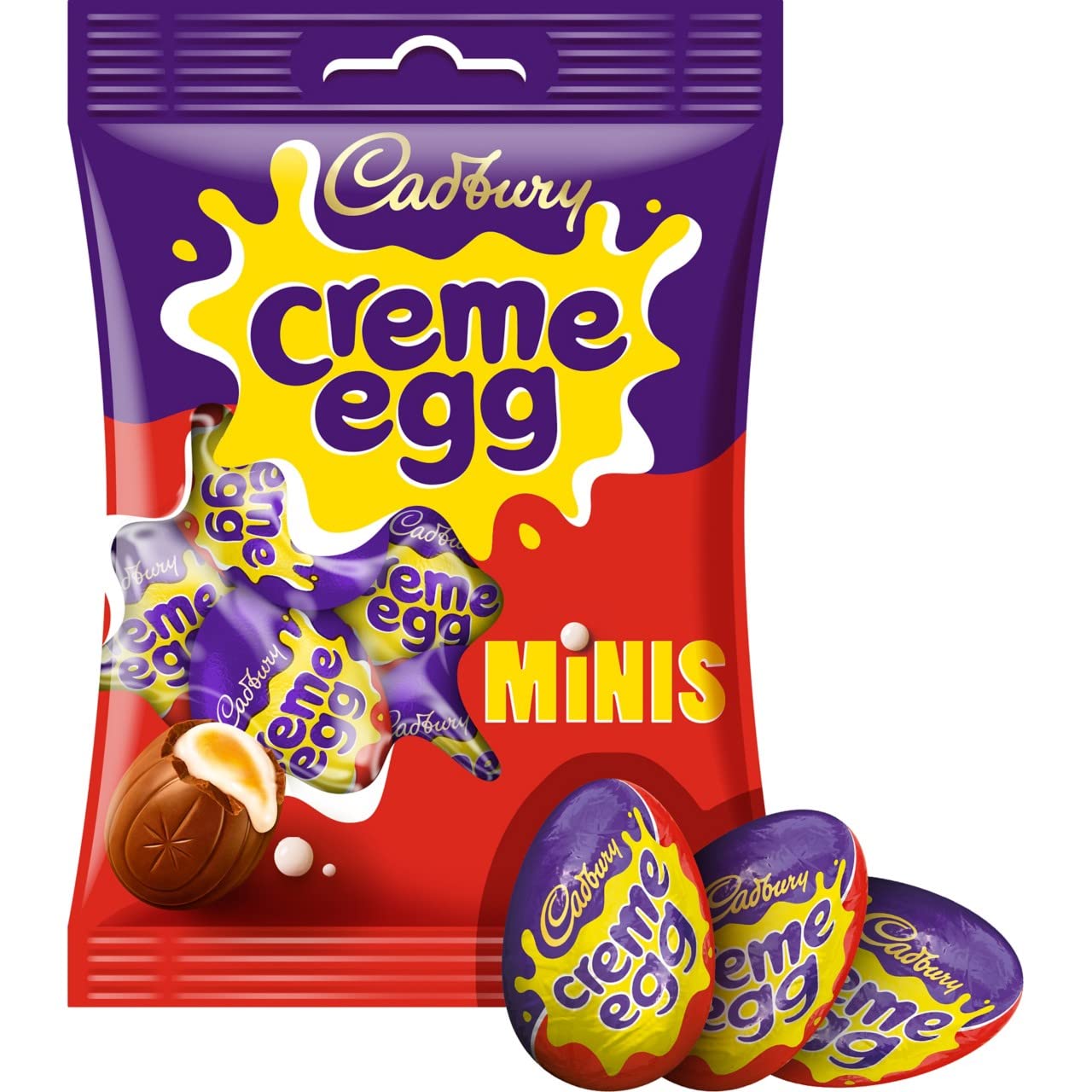 Indulge in the classic Easter treat with Cadbury Creme Egg Minis, the perfect addition to your festive celebrations. Each 78g pack contains a milk chocolate egg filled with the iconic Cadbury Creme Egg fondant, offering a delicious blend of rich chocolate and a sweet, gooey filling. These mini eggs are perfect for Easter egg hunts, baskets, or as delightful snacks. The high-quality Cadbury milk chocolate shell encases a sumptuous fondant center that mimics the look and taste of a real egg yolk and white. The convenient size makes it easy to share or enjoy on your own. Made with the finest ingredients, Cadbury Creme Egg Minis deliver a premium chocolate experience that captures the joy and spirit of Easter. Treat yourself or a loved one to these stunning mini eggs and make your Easter celebrations even sweeter. INGREDIENTS Sugar, MILK, glucose syrup, cocoa butter, invert sugar syrup, whey powder (from milk), cocoa mass, vegetable fats (palm, shea), emulsifier (E442), dried egg white, flavorings, color (paprika extract). Milk chocolate: 14 minimum milk solids. Contains vegetable fats in addition to cocoa butter.Cadbury Œuf crème minis, parfait pour Pâques, œuf au chocolat au lait rempli de fondant, 78 g (lot de 1)DESCRIPTION DU PRODUIT DESCRIPTION DU PRODUIT Laissez-vous tenter par la friandise de Pâques classique avec Cadbury Creme Egg Minis, le complément parfait à vos fêtes de fin d'année. Chaque paquet de 78 g contient un œuf en chocolat au lait rempli de l'emblématique fondant Cadbury Creme Egg, offrant un délicieux mélange de chocolat riche et de garniture sucrée et gluante. Ces mini œufs sont parfaits pour la chasse aux œufs de Pâques, les paniers ou comme délicieuses collations. La coquille de chocolat au lait Cadbury de haute qualité renferme un centre fondant somptueux imitant l'apparence et le goût d'un véritable jaune d'œuf et blanc. La taille pratique le rend facile à partager ou à profiter en solo. Fabriqués avec les meilleurs ingrédients, Cadbury Creme Egg Minis offrent une expérience chocolatée de qualité supérieure qui capture la joie et l'esprit de Pâques. Faites-vous plaisir ou faites plaisir à un être cher avec ces superbes mini œufs et rendez vos fêtes de Pâques plus douces. INGRÉDIENTS Sucre, LAIT, sirop de glucose, beurre de cacao, sirop de sucre inverti, poudre de lactosérum (du lait), pâte de cacao, graisses végétales (palme, karité), émulsifiant (E442), blanc d'œuf séché, arômes, colorant (extrait de paprika). Chocolat au lait : 14 minimum de solides au lait. Contient des graisses végétales en plus du beurre de cacao