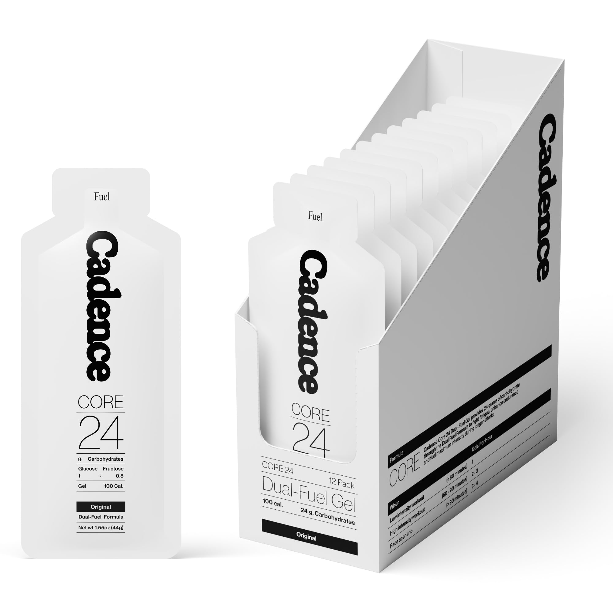 Clean Ingredients for Reliable Performance: Made with water, glucose, fructose, sea salt, and essential electrolytes, Cadence Core Gel is a trusted choice for runners, cyclists, and endurance athletes seeking reliable energy and hydration. Neutral Flavor for Consistent Use: Unflavored to prevent taste fatigue, allowing for easy and consistent consumption throughout extended workouts, races, or endurance activities. Optimized Absorption and Gentle on Stomach: The dual fuel formula is designed to maximize carbohydrate uptake while reducing bloating, cramping, and nausea, making it ideal for athletes with sensitive stomachs. Electrolyte Support for Hydration: Each gel contains 200mg sodium plus potassium, calcium, and magnesium to replace electrolytes lost through sweat, supporting hydration, muscle function, and peak performance. Science-Backed Endurance Fuel: Cadence Core Gel delivers 24g of carbohydrates in a 1:0.8 glucose-to-fructose ratio, optimizing absorption and minimizing gut stress for sustained energy during long training sessions and endurance events.