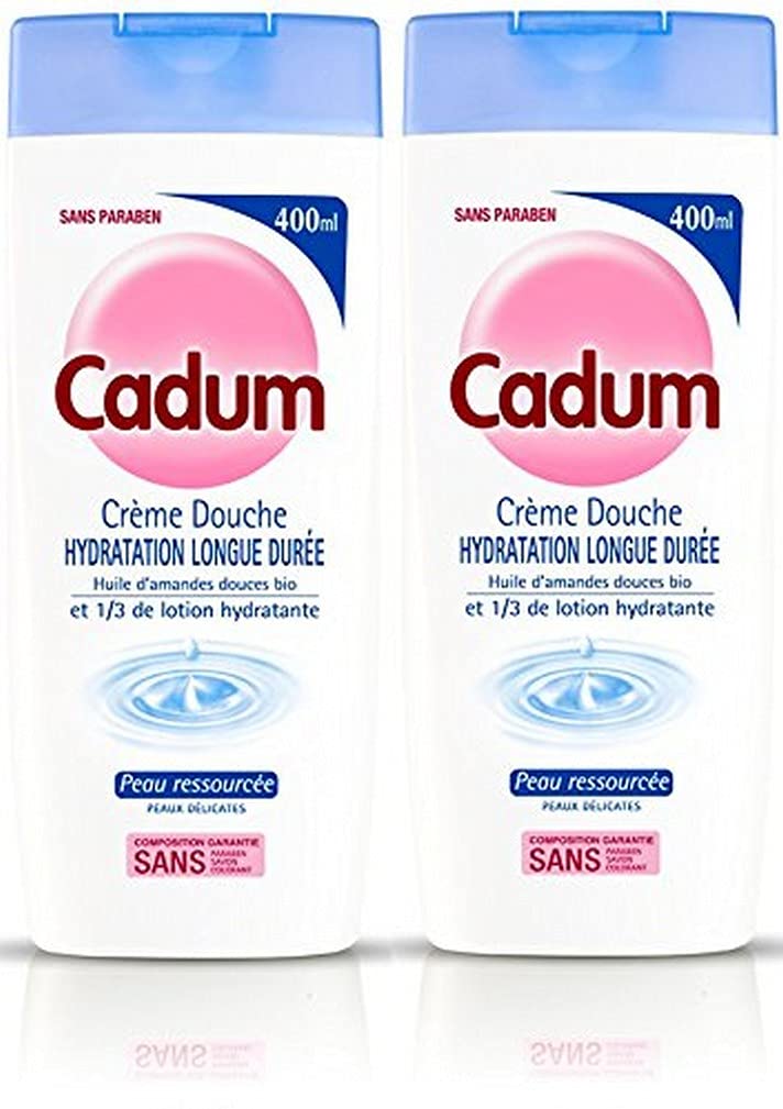 DESCRIPTION DU PRODUIT Cadum, spécialiste de la douceur depuis 1907, a mis tout son savoir-faire dans sa Crème Douche Hydratation Longue Durée enrichi à l'huile d'amandes douces bio et 1 3 de lotion hydratante. Idéale pour les peaux délicates, elle nettoie et hydrate votre peau en lui apportant douceur et réconfort. Votre peau est douce, souple et éclatante comme celle d'un bébé.