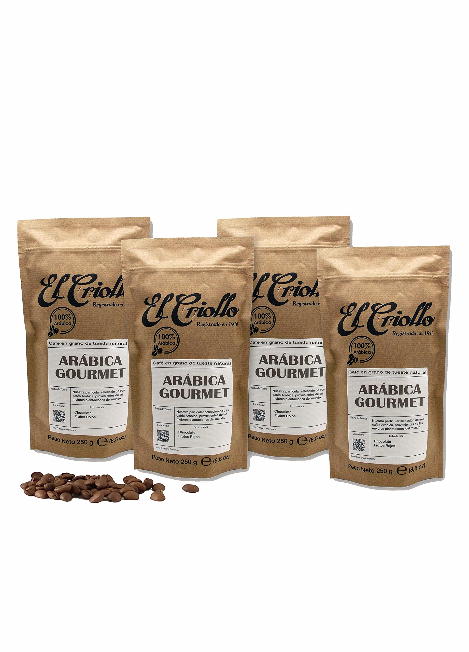 Caf Arabica gourmet en grains - El Criollo | M lange d'Arabica torr fi 100% naturel | Caf de sp cialit | Paquet de 4x250gr. (1 KG)