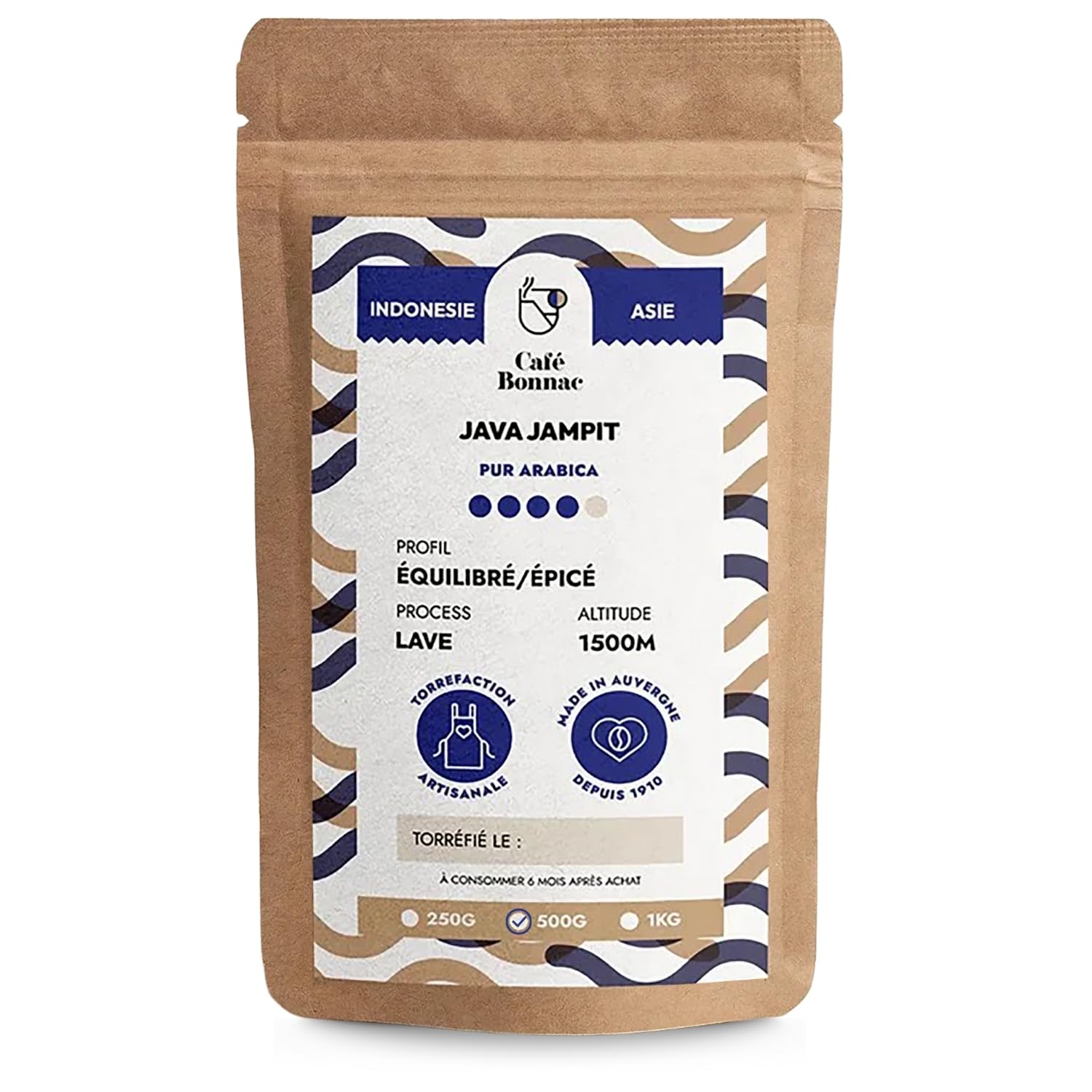 Café Bonnac – Café En Grain Indonésie Java 500gr 100 Arabica De Terroir Notes De Bois Précieux, Tabac Blond Et Chocolat Noir Torréfaction Artisanale Idéal Machine À Café Grain 1 500 g (Lot de 1)