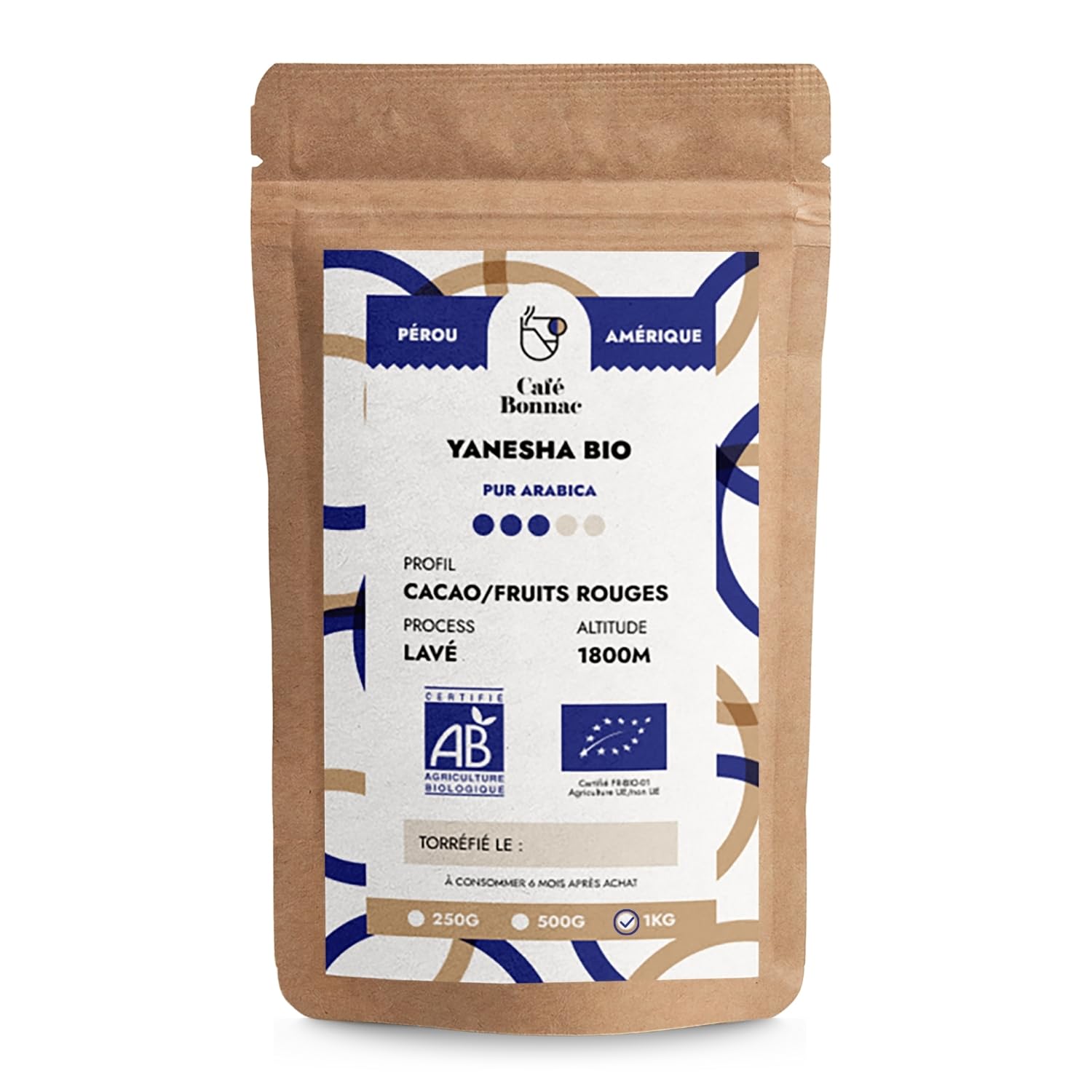 Café Bonnac – Café Moulu Pérou Yanesha 1kg 100 Arabica De Haute Altitude Notes De Chocolat, Miel Et Épices Douces Torréfaction Artisanale Française Compatible Filtre, Piston Méthodes Douces