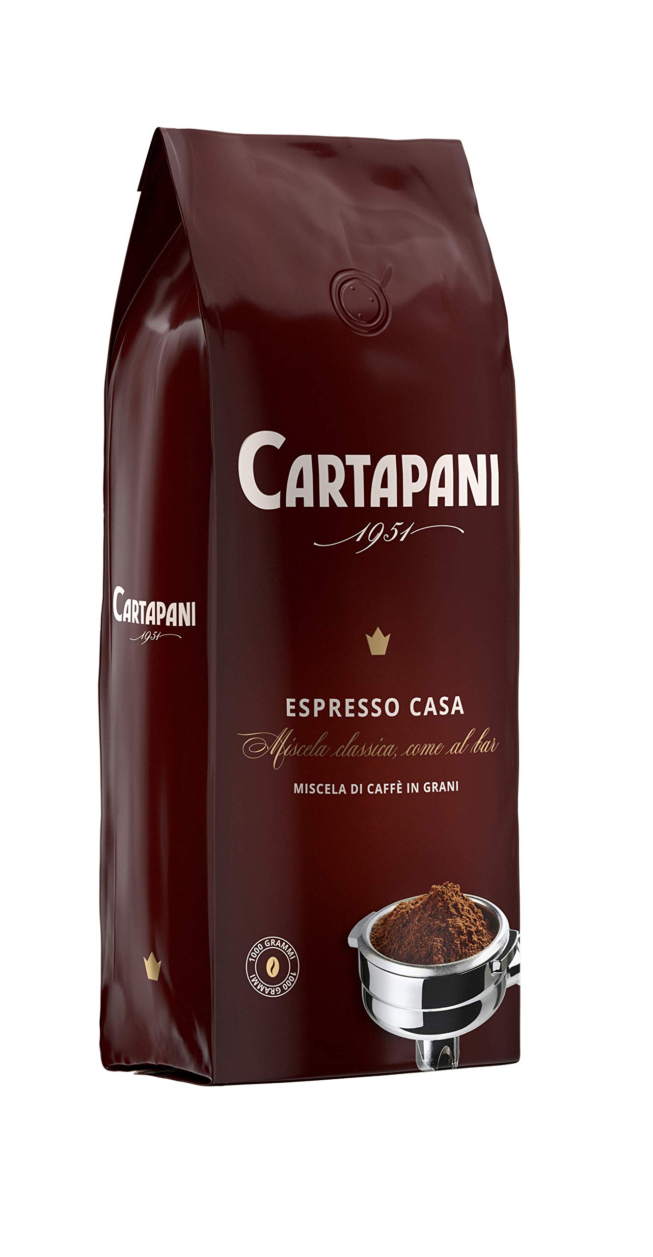 ?SERIOUSNESS, PROFESSIONALISM, CERTAINTY: Quality is protected by heat-sealed cgs with "anti-aromatic" valves for the coffee beans. THIS IS NOT JUST ANY OTHER COFFEE: Cartapani Espresso Casa is our favorite blend for those who love to drink great coffee every morning. THE QUALITY OF CARTAPANI COFFEE: Experience the pleasure of superior coffee with a harmonious, elegant, and lingering aftertaste. AT CARTAPANI, THE PURSUIT OF EXCELLENCE IS A DAILY LIFETIME: An enveloping fragrance with an intense, round, velvety, and balanced aroma. ? CLASSIC BAR BLEND: A blend of fine Arabica and Robusta coffees with a strong and full-bodied taste, ground specifically for home espresso machines.