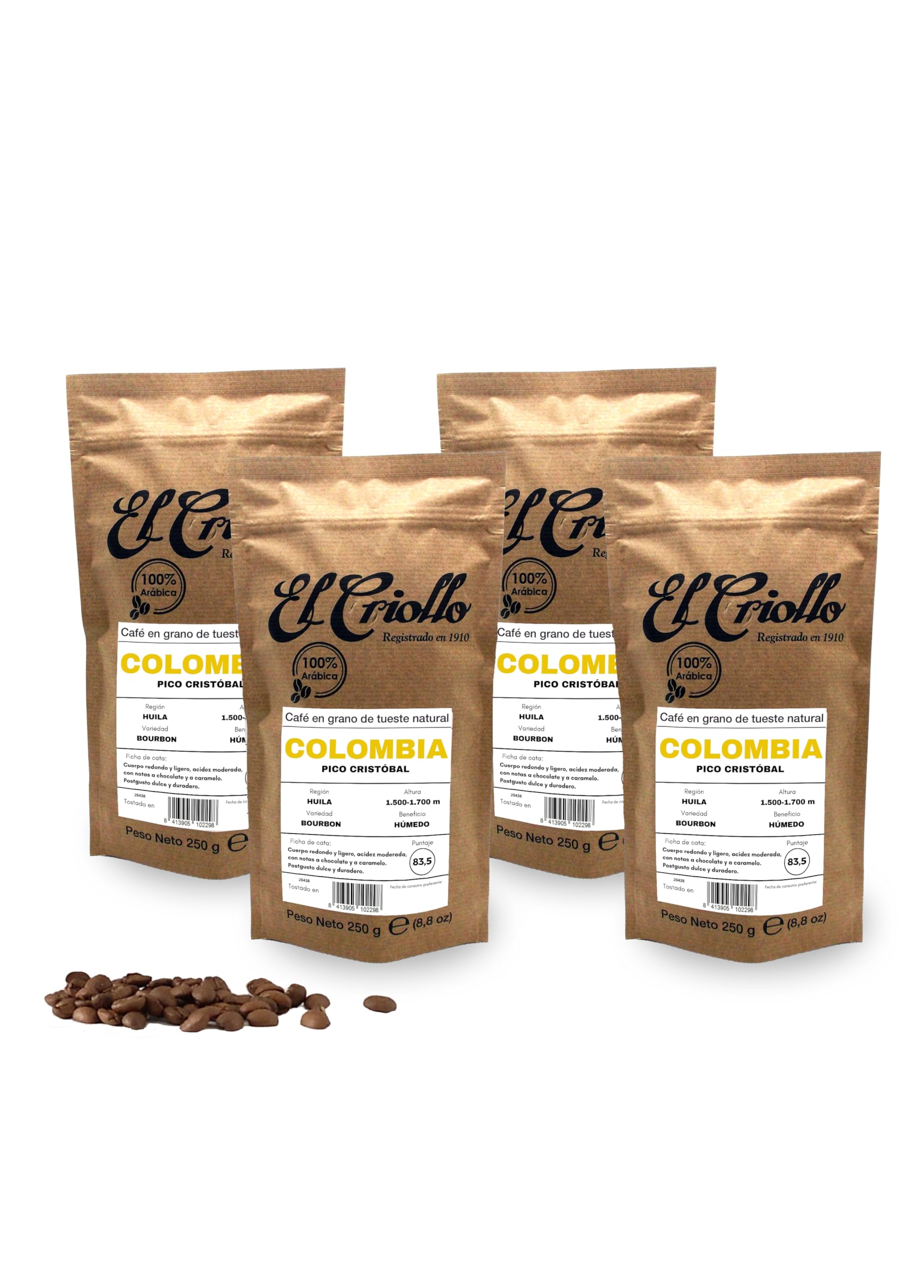 Café Colombien EN GRAIN - Cafés El Criollo Pic Cristobal Café de spécialité 100 Arabica et torréfié naturellement Paquet de 4x250 g (1kg)