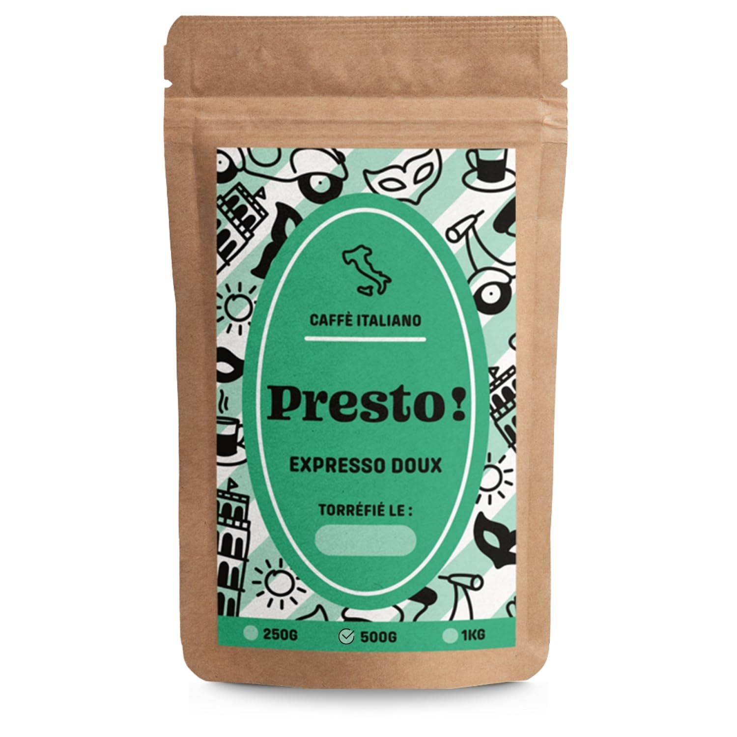 Caf En Grain Presto Expresso Doux 500gr | 100% Arabica Torr fi L Italienne | Espresso L ger Et Velout | Ar mes De Noisette Et Chocolat | Id al Machine Caf Grain