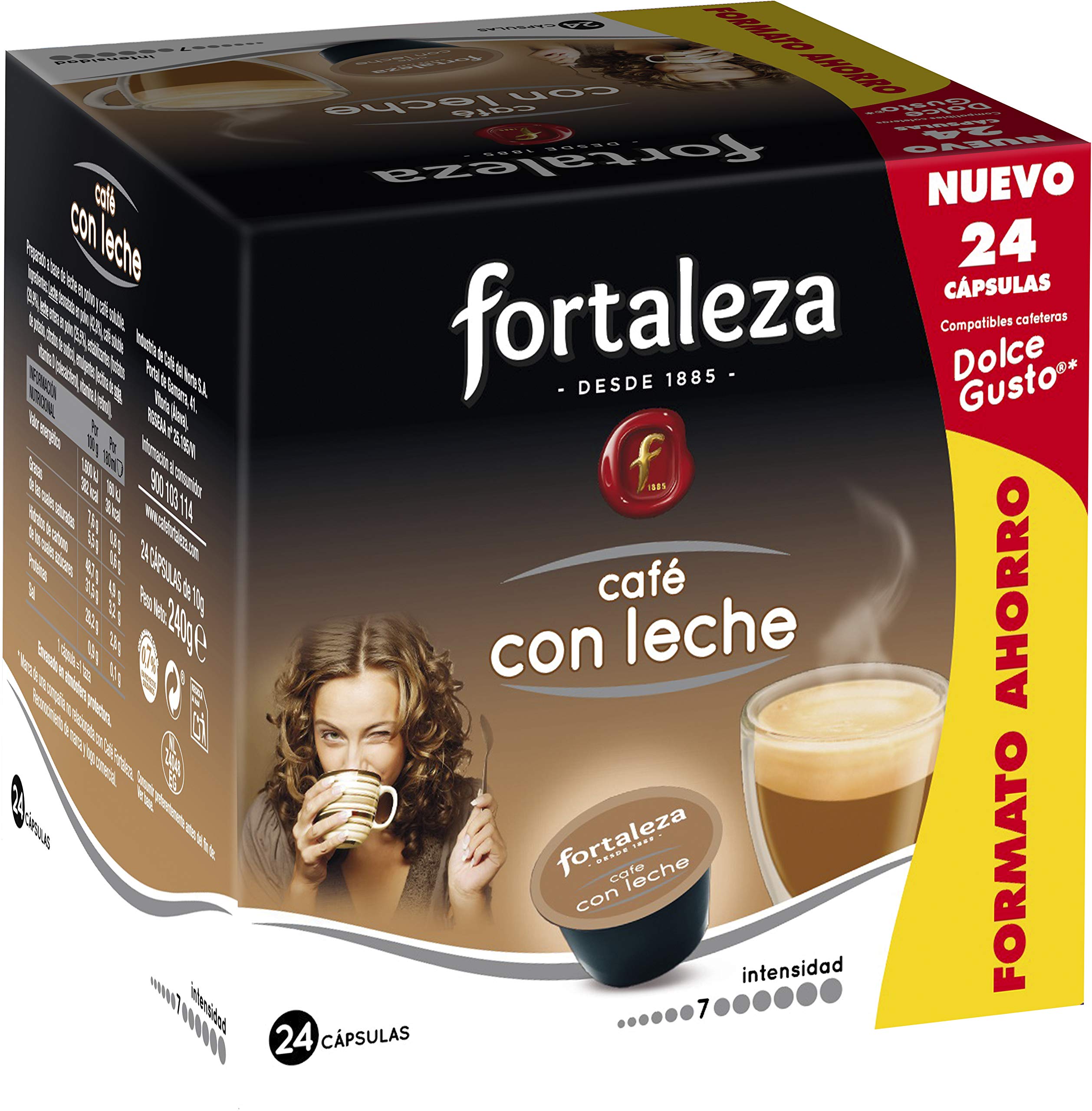 CAF fortaleza desde 1885 - Caf Fortaleza - Dolce Gusto compatible capsules caf au lait flavor perfectly balanced and ready to drink - Pack of 24 x 4 - Total 96 capsules