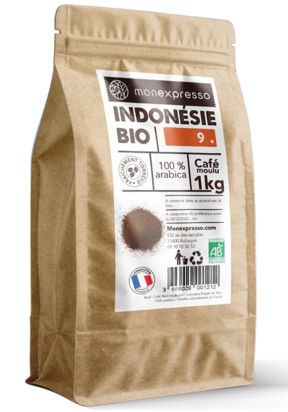 Caf grain 1kg - 100% Arabica - Indon sie - Intensit 9 - Torr fi Artisanalement en France - 100% biologique - Monexpresso