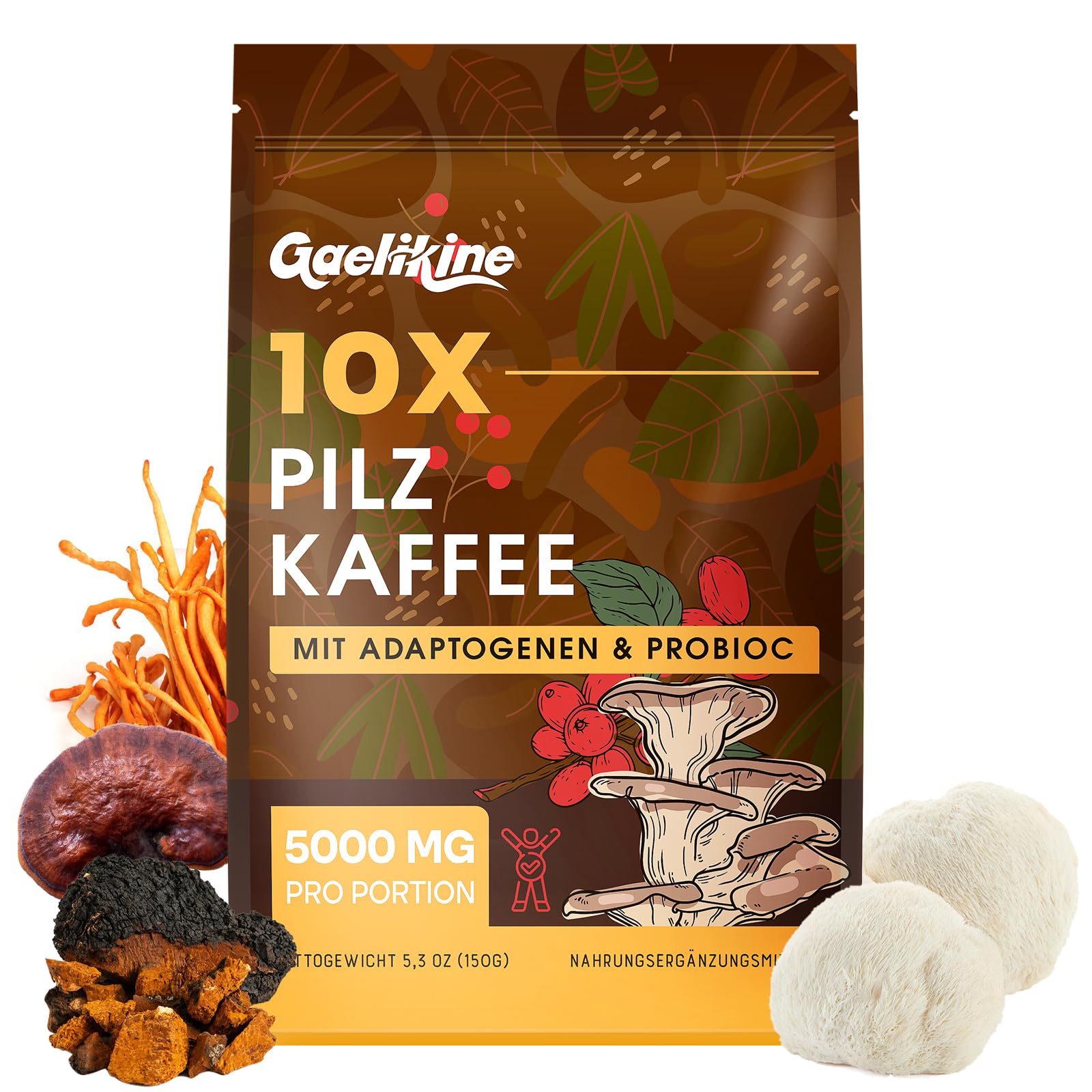 Gaelikine Café mushroom: an enhanced coffee experience and your best choice.DELICIOUS MUSHROOM COFFEE POWDER FOR WOMEN AND MEN – Each pack contains 150g of instant mushroom coffee powder, enough for 30 servings (recommended daily intake: 5g). Simply mix 1 teaspoon into hot water or milk and enjoy. Note: Spoon not included. MADE WITH HIGH-QUALITY INGREDIENTS – Our instant mushroom coffee is made from natural ingredients and is free of sugar, gluten, GMOs, artificial additives, fillers, and preservatives. It is also suitable for vegans. LOW CALORIES, LESS CAFFEINE – Gaelikine mushroom coffee impresses with its smooth and balanced Arabica flavor and contains fewer calories and less caffeine than traditional coffee. NOT ALL MUSHROOM COFFEES ARE CREATED EQUALLY – We use only the fruiting bodies of mushrooms. In addition, our mushroom coffee contains selected adaptogens and probiotics, including ashwagandha, shilajit, bacillus coagulans, and lactobacillus acidophilus—a versatile alternative to coffee. MUSHROOM COMPLEX WITH 10 MUSHROOMS—Compared to traditional coffee, Gaelikine Mushroom Coffee is enriched with 10 carefully selected mushroom varieties, including lion's mane, cordyceps, chaga, reishi, shiitake, maitake, king oyster mushroom, agaricus blazei, antrodia camphorata, and poria cocos. Each serving provides 5000 mg of fungal complex.Gaelikine Café mushroom : une expérience de café améliorée et votre meilleur choix.DÉLICIEUX POUDRE DE CAFÉ AU CHAMPIGNONS POUR FEMMES ET HOMMES – Chaque paquet contient 150 g de poudre de café instantané aux champignons pour 30 portions (dose journalière recommandée : 5 g). Il suffit de mélanger 1 cuillère à café dans de l'eau chaude ou du lait et de profiter. Remarque : cuillère non incluse. ÉLABORÉ À PARTIR D'INGRÉDIENTS DE HAUTE QUALITÉ – Notre café aux champignons instantané est fabriqué à partir d'ingrédients naturels et est exempt de sucre, de gluten, d'OGM, d'additifs artificiels, de matières de remplissage et de conservateurs. De plus, il est adapté aux végétaliens. PEU DE CALORIES, MOINS DE CAFÉINE – Le café aux champignons Gaelikine convainc par son goût doux et équilibré d'arabica et contient moins de calories et moins de caféine que le café traditionnel. PAS TOUS LES CAFÉS AUX CHAMPIGNONS SONT ÉGAUX – Nous utilisons exclusivement les corps fructifères des champignons. De plus, notre café aux champignons contient des adaptogènes et probiotiques sélectionnés, y compris l'ashwagandha, le shilajit, le bacillus coagulans et le lactobacillus acidophilus – une alternative polyvalente au café. COMPLEXE DE CHAMPIGNONS AVEC 10 CHAMPIGNONS – En comparaison avec le café traditionnel, le café aux champignons Gaelikine est enrichi avec 10 variétés de champignons soigneusement sélectionnées, notamment la crinière de lion, le cordyceps, le chaga, le reishi, le shiitake, le maitake, le pleurote royal, l'agaricus blazei, l'antrodia camphorata et le poria cocos. Chaque portion fournit 5000 mg de complexe fongique.Café à la moutarde Plus de 10 extraits de moutarde en poudre, café Itat Araica avec Lio' Mae, Chaga, Reihi, Cordyce More, extrait de moutarde en poudre, 150 g