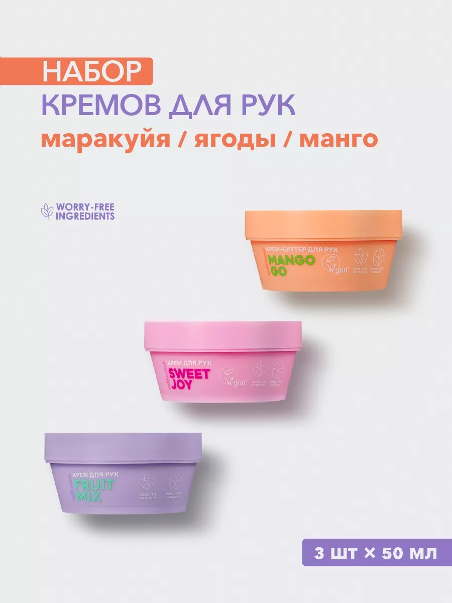 | Комплектация | крем для рук Fruit Mix, 50 мл; крем для рук Sweet Joy, 50 мл; крем-баттер для рук Mango Go, 50 мл |