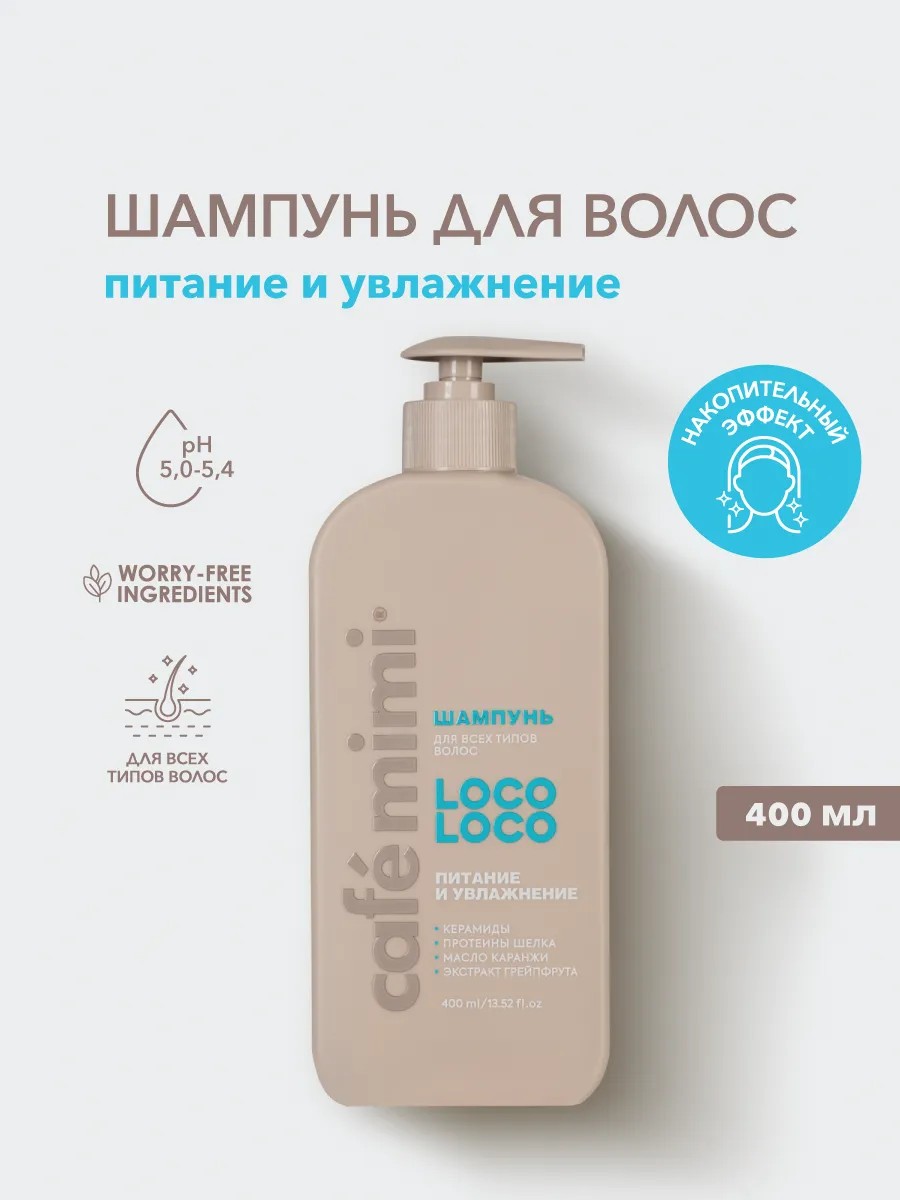 Café mimi Шампунь для волос "LOCO-LOCO" питание и увлажнение, 400 мл