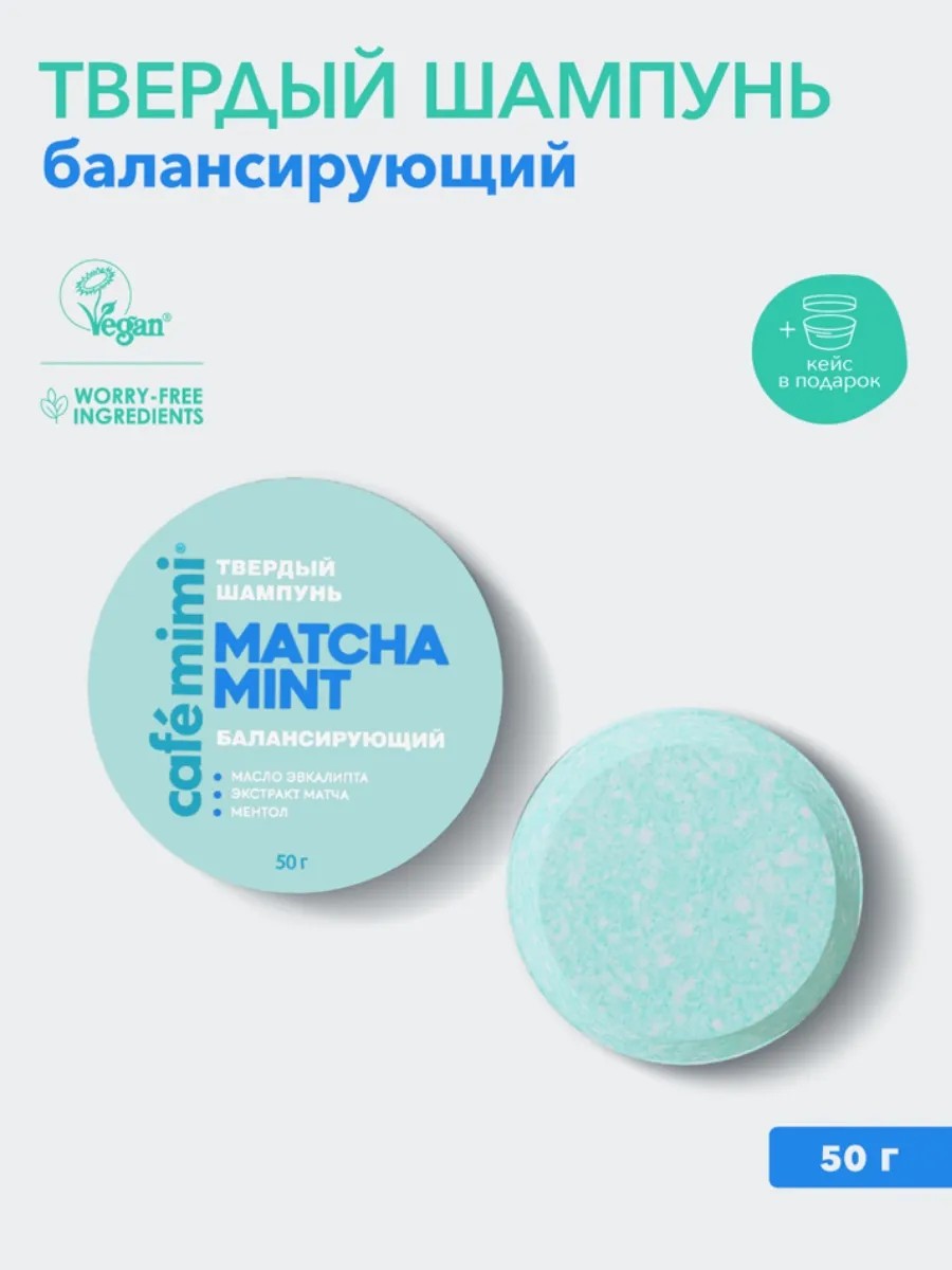 Café mimi Твердый шампунь для волос MATCHA MINT балансирующий, 50г