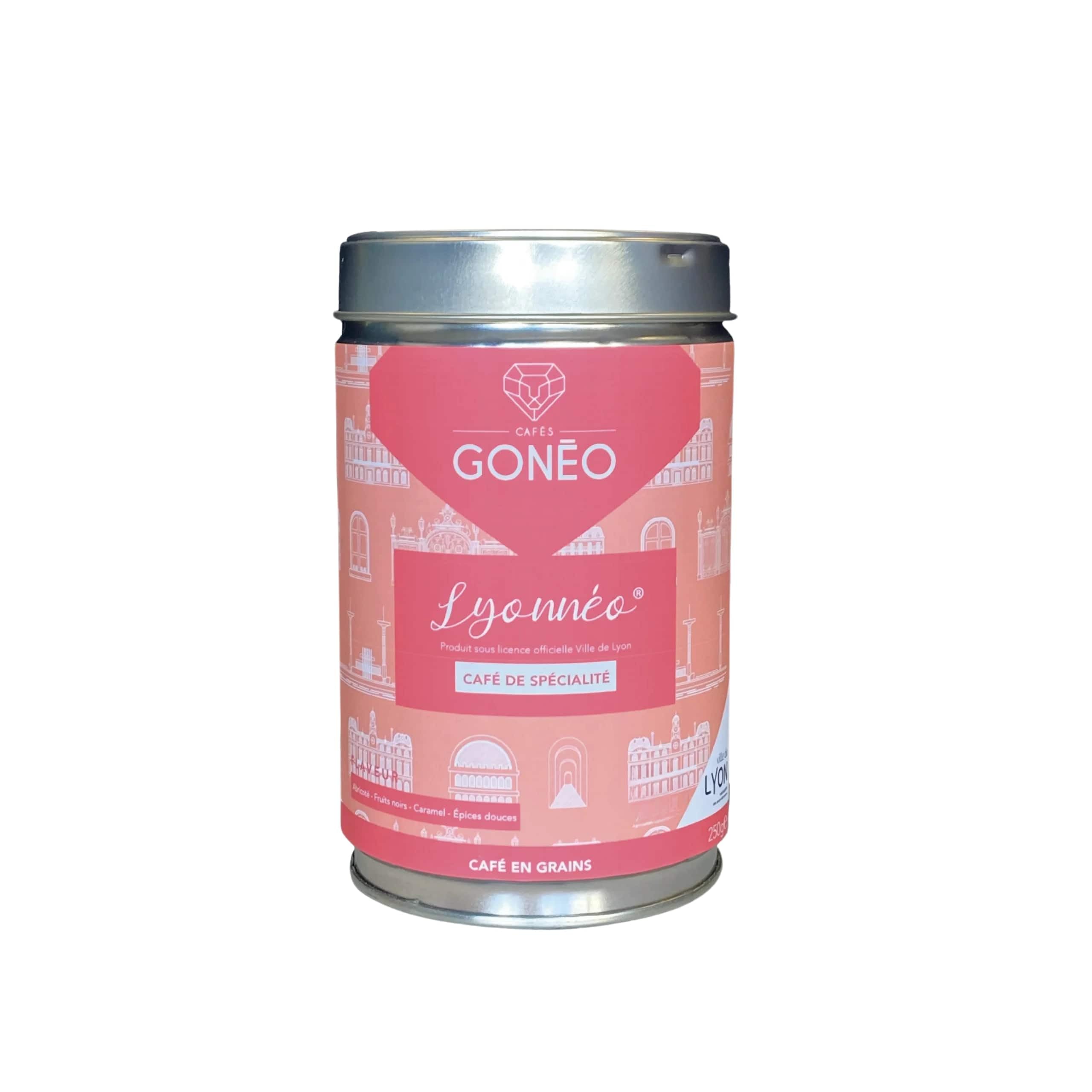 CAFÉS GONÉO - Café En Grains - Lyonneo - 100 Arabica - Notes de Fruits Rouges Caramel - Café Local - Savoureux et Équilibré - Avec la Ville de Lyon - 250 g