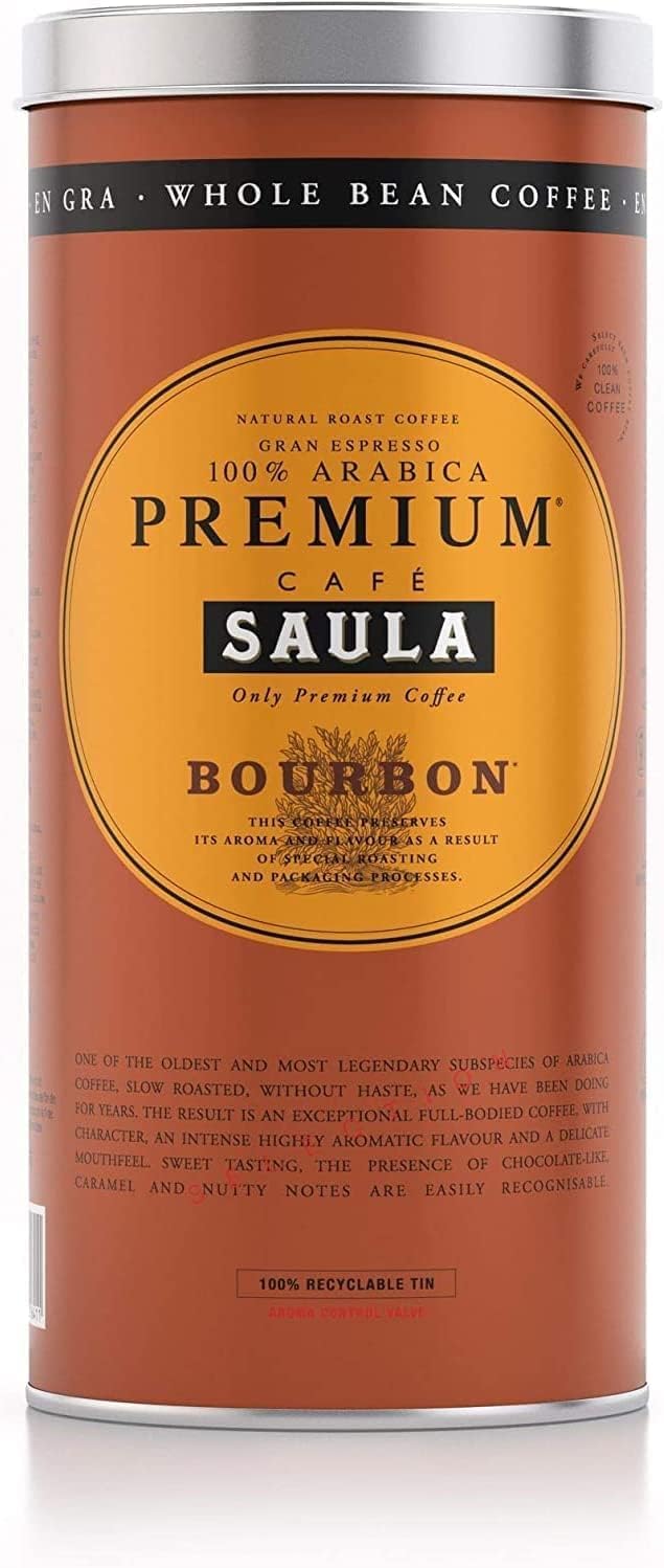 Exclusive blend of 100 Arabica coffee with 50 Bourbon type. The result is an exceptional, characteristic and very aromatic coffee. Medium intensity. Full body and a nice delicacy. A sweet and chocolate mug. Our exclusive Saula container is designed to preserve the full aroma of your coffee. You can taste an extraordinary coffee, with a selection process of more than 7 stages, of course 17 minutes at 225 degrees, of course without roasting with azucar and according to family recipe. Ideal for: super automatic coffee makers, moka, espresso, French Press and filter coffee makers. For coffee lovers and for those who drink a good coffee in the morning. Recommendations: In our commitment to the environment, we remind you that we can reuse our iconic containers with all kinds of contents if you decide not to use them, but put them in the container. They are 100 recyclable and a major advantage of metal recycling compared to other types of packaging is that the number of recycling types is unlimited. Origin: Central America, South America and Indonesia. INGREDIENTS coffee MANUFACTURER CONTACT INFORMATION SAULA, S.A., LAUREÀ MIRÓ 422-424, 8980, SANT FELIU DE LLOBREGAT, ES See moreCafé Saula Gran Espresso Premium Bourbon 500 gr. 100 Arabica-korrel Exclusieve mix van 100 Arabica koffie met 50 Bourbon-soort. Het resultaat is een uitzonderlijke, karakteristieke en zeer aromatische koffie. Gemiddelde intensiteit. Volledig lichaam en een leuke delicatesse. Een zoete en chocolademok. Onze exclusieve Saula-container is ontworpen om het volle aroma van je koffie te behouden. Je kunt een buitengewone koffie proeven, met een selectieproces van meer dan 7 fasen, natuurlijk 17 minuten bij 225 graden, natuurlijk zonder roosteren met azucar en volgens familierecept. Ideaal voor: super automatische koffiezetapparaten, moka, espresso, French Press en filterkoffiezetapparaten. Voor koffieliefhebbers en voor degenen die 's ochtends een goede koffie drinken. Aanbevelingen: in onze toewijding aan het milieu herinneren we je eraan dat we onze iconische containers met allerlei soorten inhoud kunnen hergebruiken als je besluit ze niet te gebruiken, maar ze in de container te leggen. Ze zijn 100 recyclebaar en een groot voordeel van metaalrecycling in vergelijking met andere soorten verpakkingen is dat het aantal recyclingsoorten onbeperkt is. Herkomst: Midden-Amerika, Zuid-Amerika en Indonesië. INGREDIËNTEN koffie CONTACTINFORMATIE FABRIKANT SAULA, S.A., LAUREÀ MIRÓ 422-424, 8980, SANT FELIU DE LLOBREGAT, ES Meer bekijken