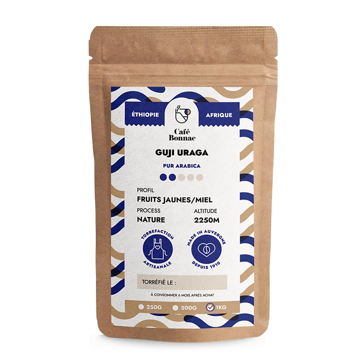 Café Bonnac – Café Moulu Éthiopie Guji Uraga 1kg 100 Arabica lavé Notes florales, agrumes thé noir Torréfaction artisanale Compatible filtre, piston méthodes douces
