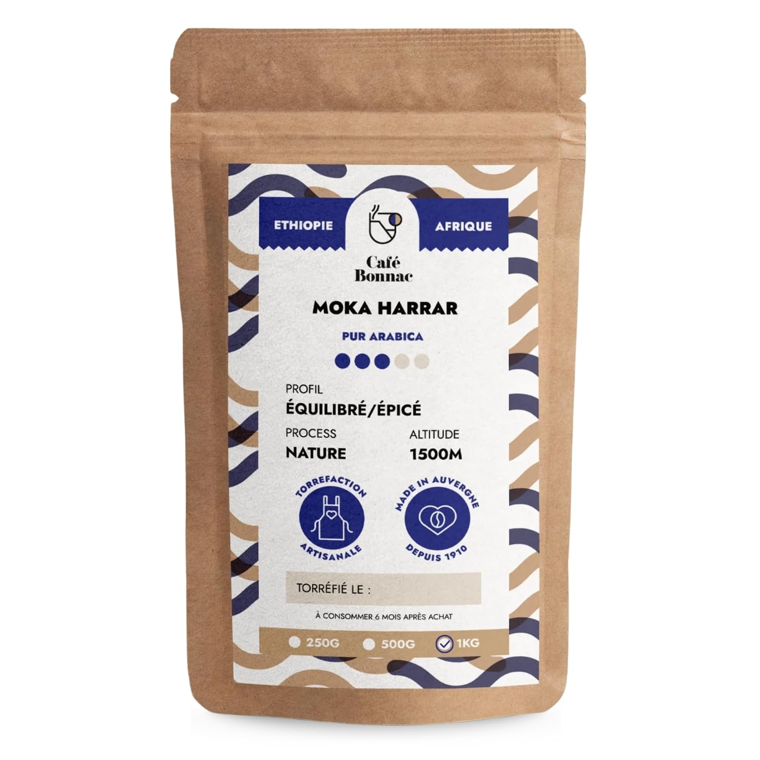 Café Bonnac – Café Moulu Éthiopie Harrar 1kg 100 Arabica Naturel Torréfaction Artisanale Française Notes De Fruits Rouges, Moka Et Épices Compatible Filtre, Piston Méthodes Douces