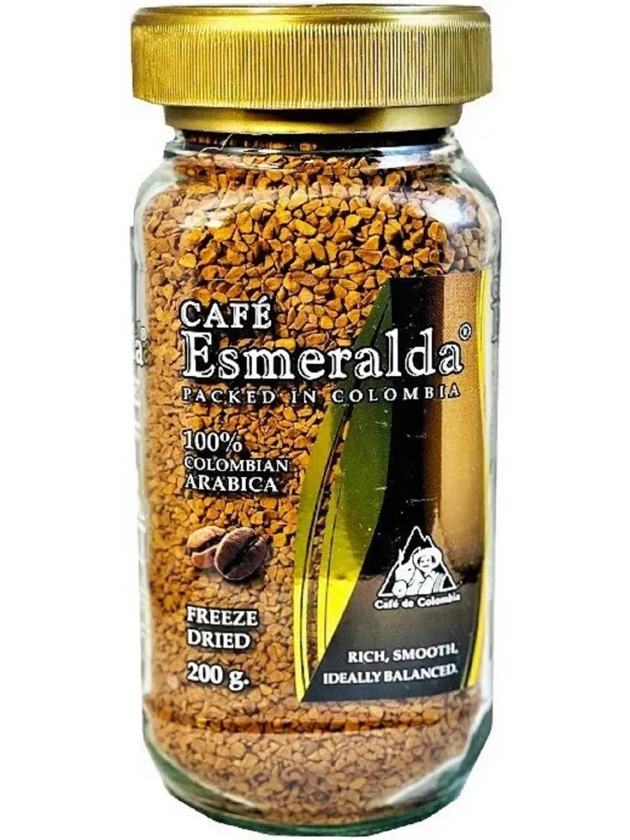 Cafe Esmeralda Кофе сублимированный Esmeralda 200 г. Кофе растворимый "Cafe Esmeralda" - это идеальный выбор для тех, кто ценит качество и вкус. Он производится из 100%-ной колумбийской арабики, которая выращивается в экологически чистых условиях и проходит строгий контроль качества.