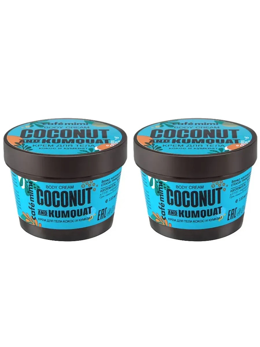 Cafe Mimi Coconut & Kumquat Body Cream, 110 ml, 2 pcs. Take care of your skin with the Coconut & Kumquat Body Cream. Coconut and Almond oils deeply nourish, moisturize, and soften the skin. Kumquat fruit extract saturates the skin with vitamins and minerals, has a toning and antioxidant effect, and leaves the skin firm and soft.
