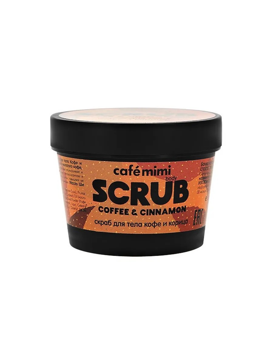 Подари своей коже заряд бодрости с помощью скраба для тела Кофе и Корица CAFÉ MIMI! Скраб на основе натурального молотого кофе, тростникового сахара и морской соли, который эффективно отшелушивает и очищает кожу . Натуральный кофе и Корица оказывают антиоксидантное и антисептическое действие, тонизируют и ревитализируют клетки кожи, повышают ее защитные функции, оказывают выраженное антицеллюлитное действие . Масло Ши питает и смягчает кожу .