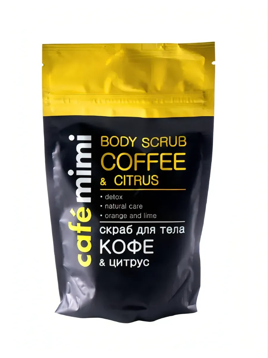 Cafe mimi скраб для тела Кофе и Цитрус 150г. Подари своей коже заряд бодрости и обновление с кофейным цитрусовым скрабом! Скраб на основе натурального молотого кофе, морской соли, тростникового сахара и цедры апельсина бережно отшелушивает и очищает кожу, способствует регенерации клеток кожи, выравнивает рельеф и заметно улучшает общее состояние кожи, повышает эластичность и упругость. Входящие в состав масло Авокадо, эфирные масла Апельсина и Лайма питают и увлажняют, улучшают тонус кожи, смягчая и разглаживая ее.