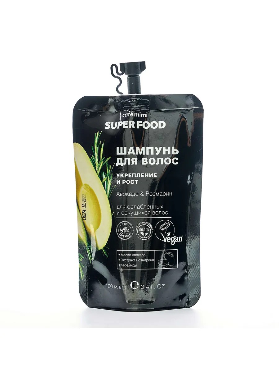 Cafe mimi Super Food Шампунь для волос Укрепление и рост Авокадо & Розмарин 100мл