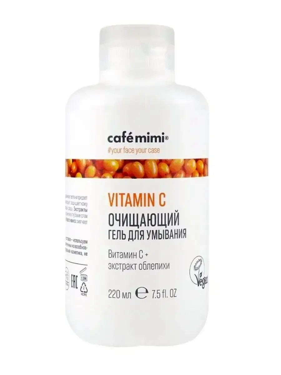 Cafe Mimi Vitamin C Cleansing Gel Wash, 220 ml. This cleansing gel gently cleanses the skin, evens out skin tone, and imparts a healthy glow. Vitamin C, a powerful antioxidant, protects the skin from environmental aggressors. Lemon and sea buckthorn extracts intensely moisturize, penetrating deep into the skin, stimulating cell regeneration. Mango butter softens the skin and eliminates flaking. Directions: Apply the desired amount of gel to damp skin, lather, and then rinse with warm water. For deeper cleansing, leave on for 1 minute and then rinse. For external use only.