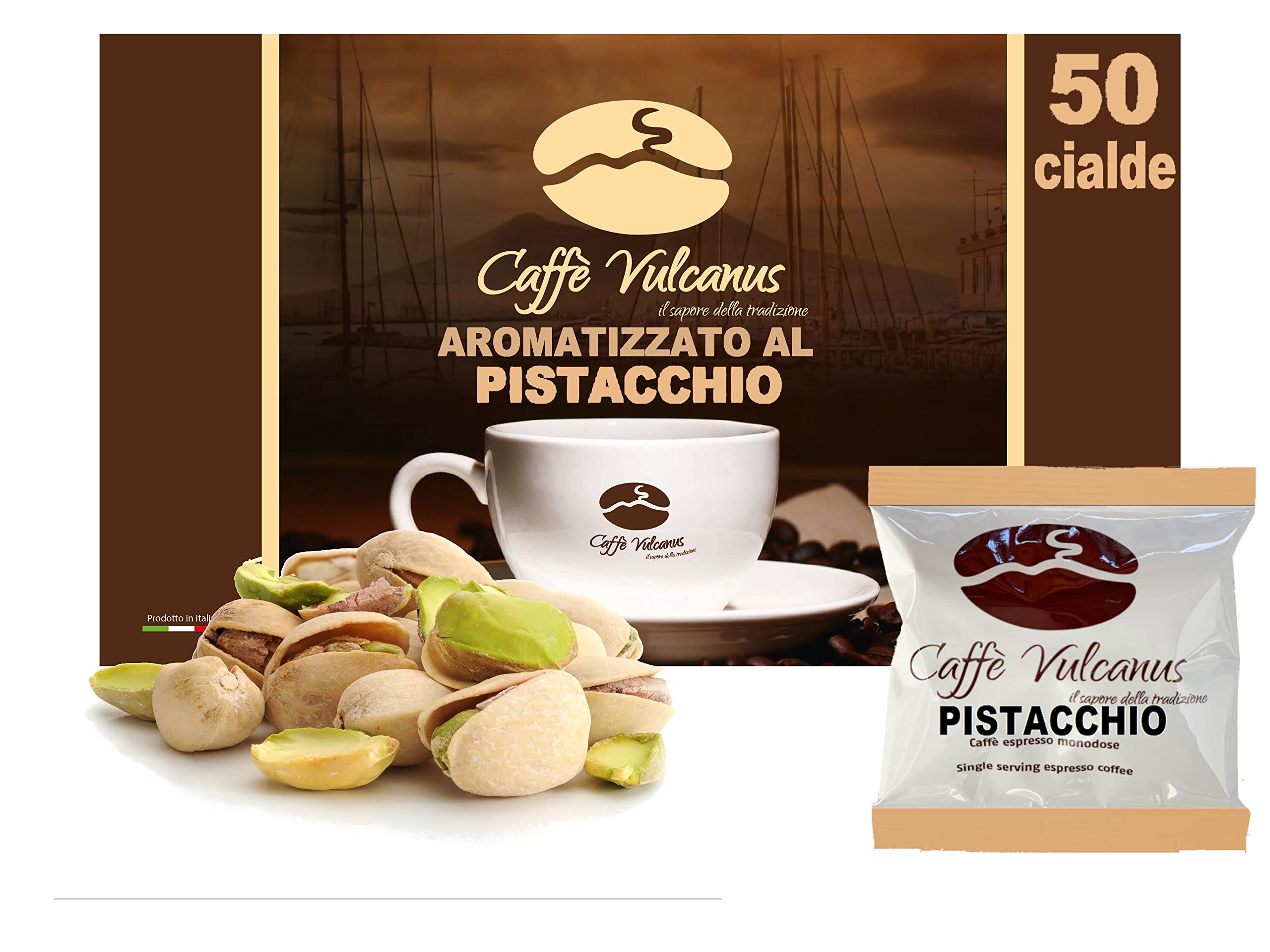 Caffè Vulcanus - 50 dosettes compostables ESE44 - Café aromatisé (Pistache, Pack de 50 dosettes)