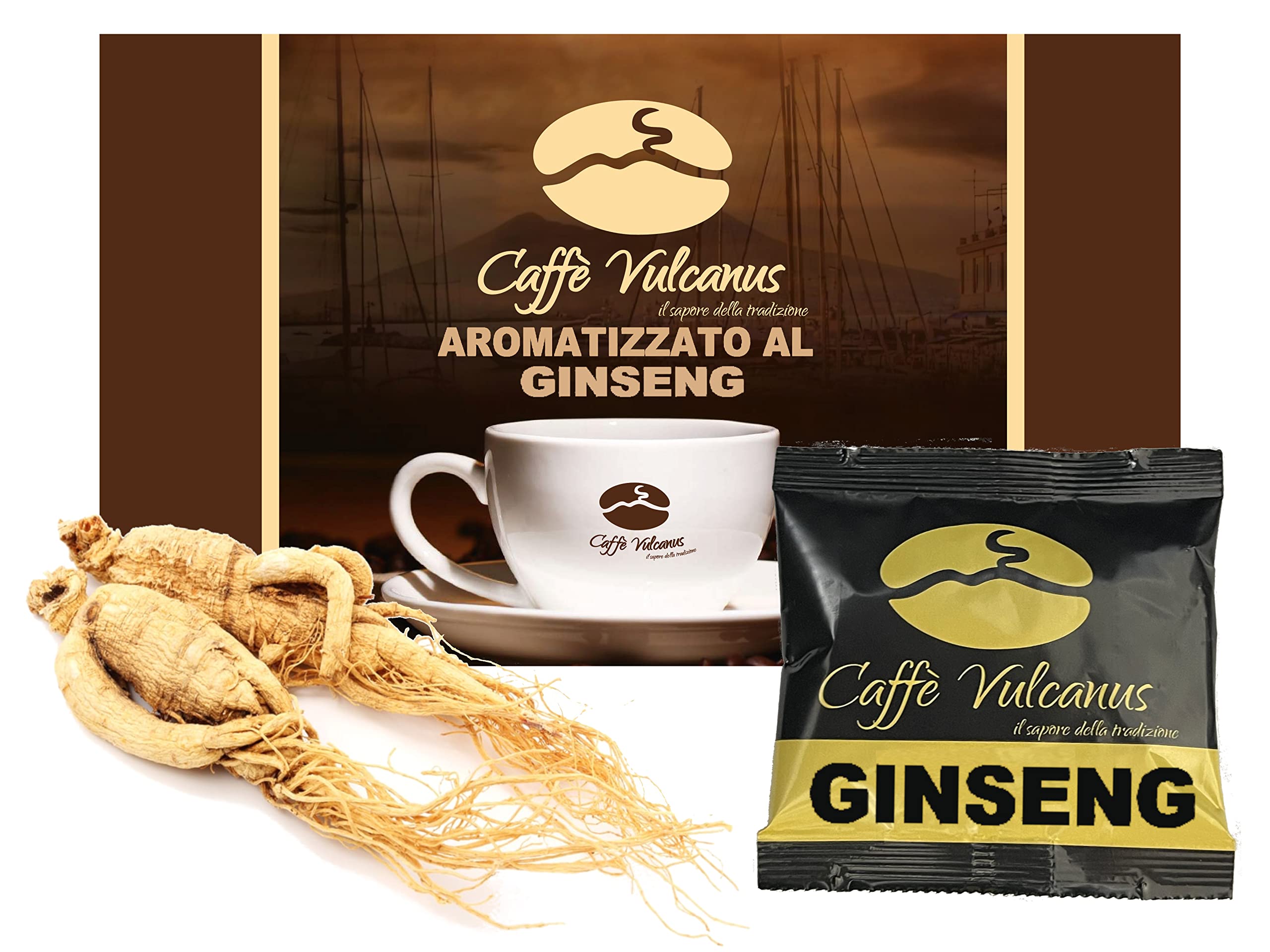 Caffè Vulcanus - 50 dosettes au goût ESE44 - Café au goût ginseng