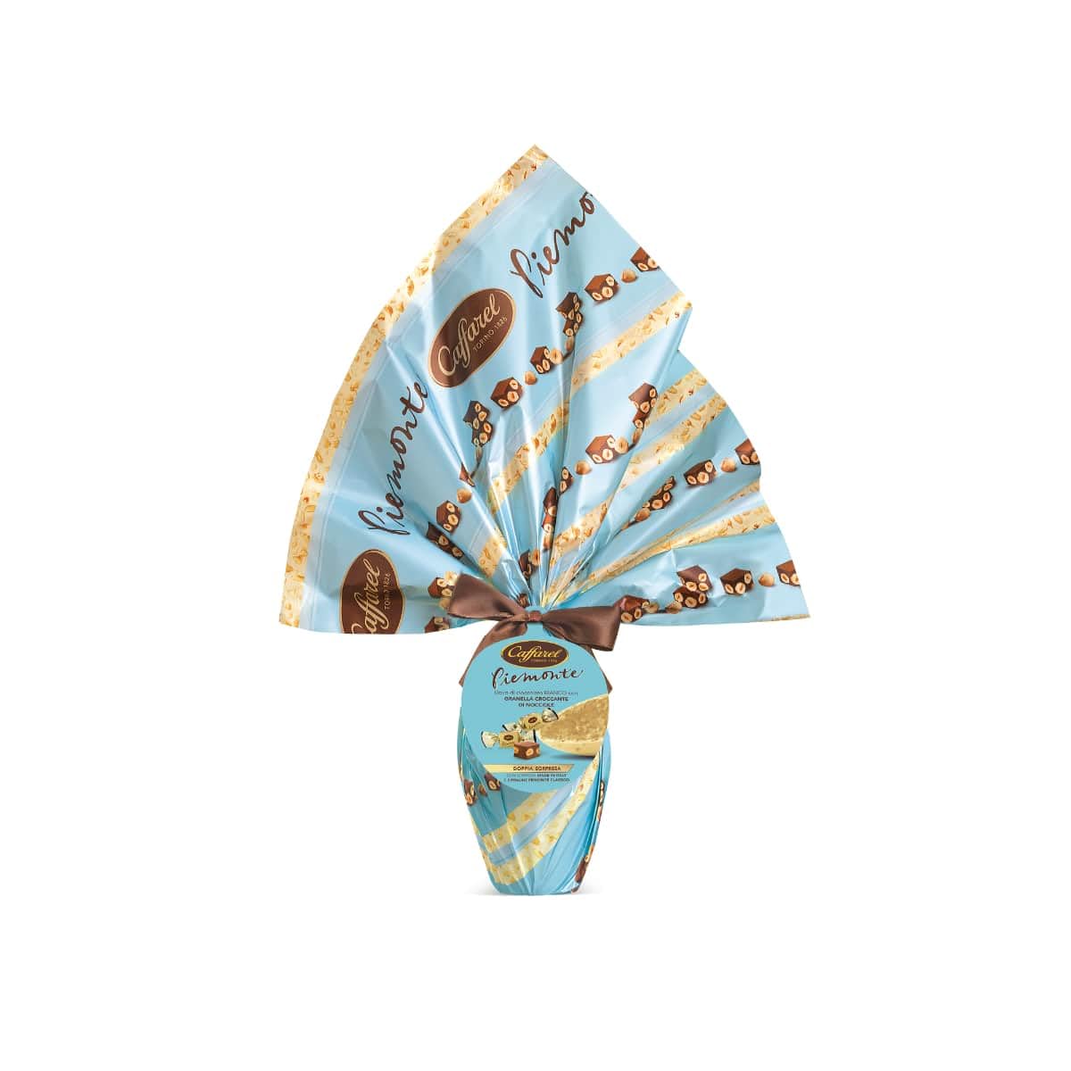 A very fine milk chocolate egg with Piedmont IGP hazelnut pieces, inside an iconic surprise: three gourmet Piedmont Classico pralines. INGREDIENTS Sugar, cocoa butter, hazelnuts 16 , whole milk powder, cocoa mass, skimmed milk powder, emulsifier: lecithins (soy), vanillin, almonds.