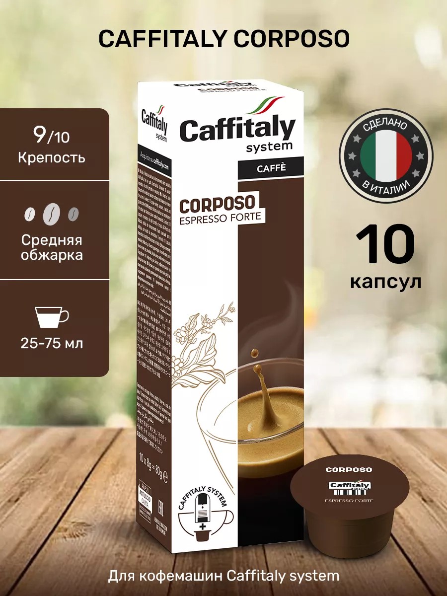 Капсулы для кофемашины Caffitaly Corposo – это интенсивный, терпкий, крепкий эспрессо с пряным ароматом и шоколадными нотками.