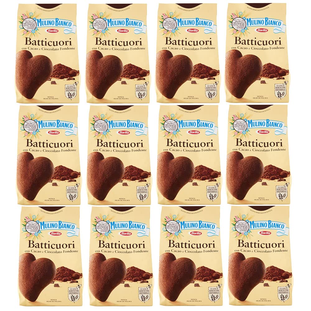 12 x Moulin Blanc Biscuits Frollini Batticoeurs avec cacao et chocolat, sans huile de palme, petit déjeuner riche en goût, 350 gr [12 paquets]