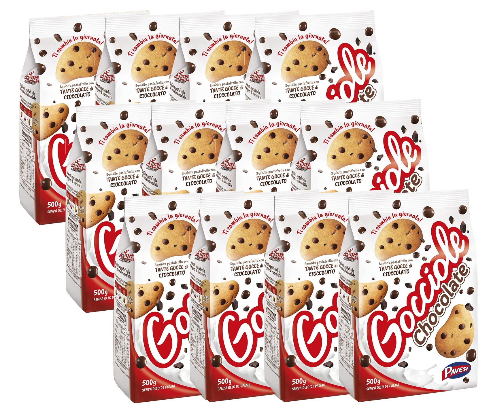12X Pavesi - Gouttes Chocolate Classiques 500 g - Biscuits aux gouttes de Chocolat