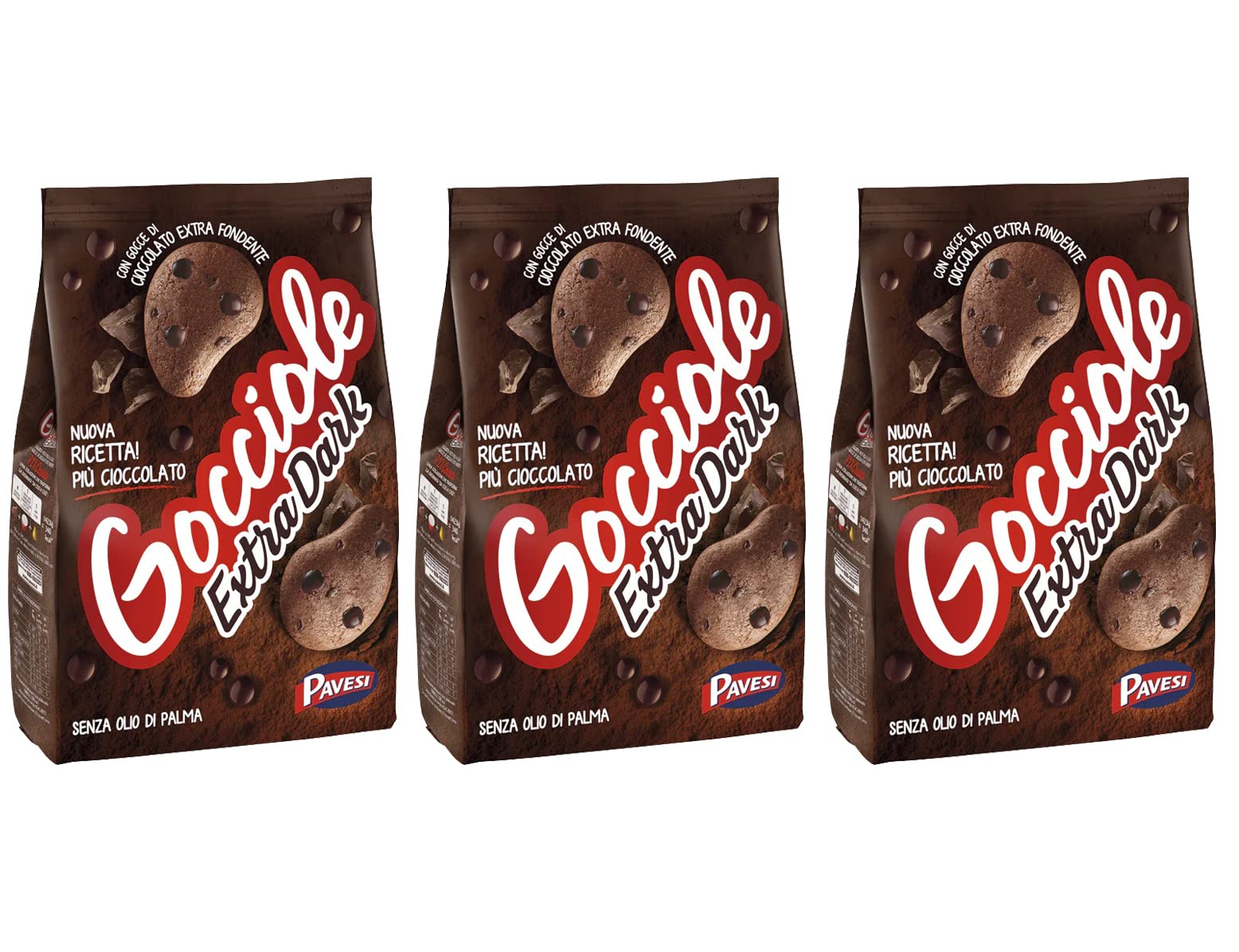 3X Pavesi - Gouttes Extra Dark 400 g - Biscuits au cacao avec gouttes de chocolat extra noir