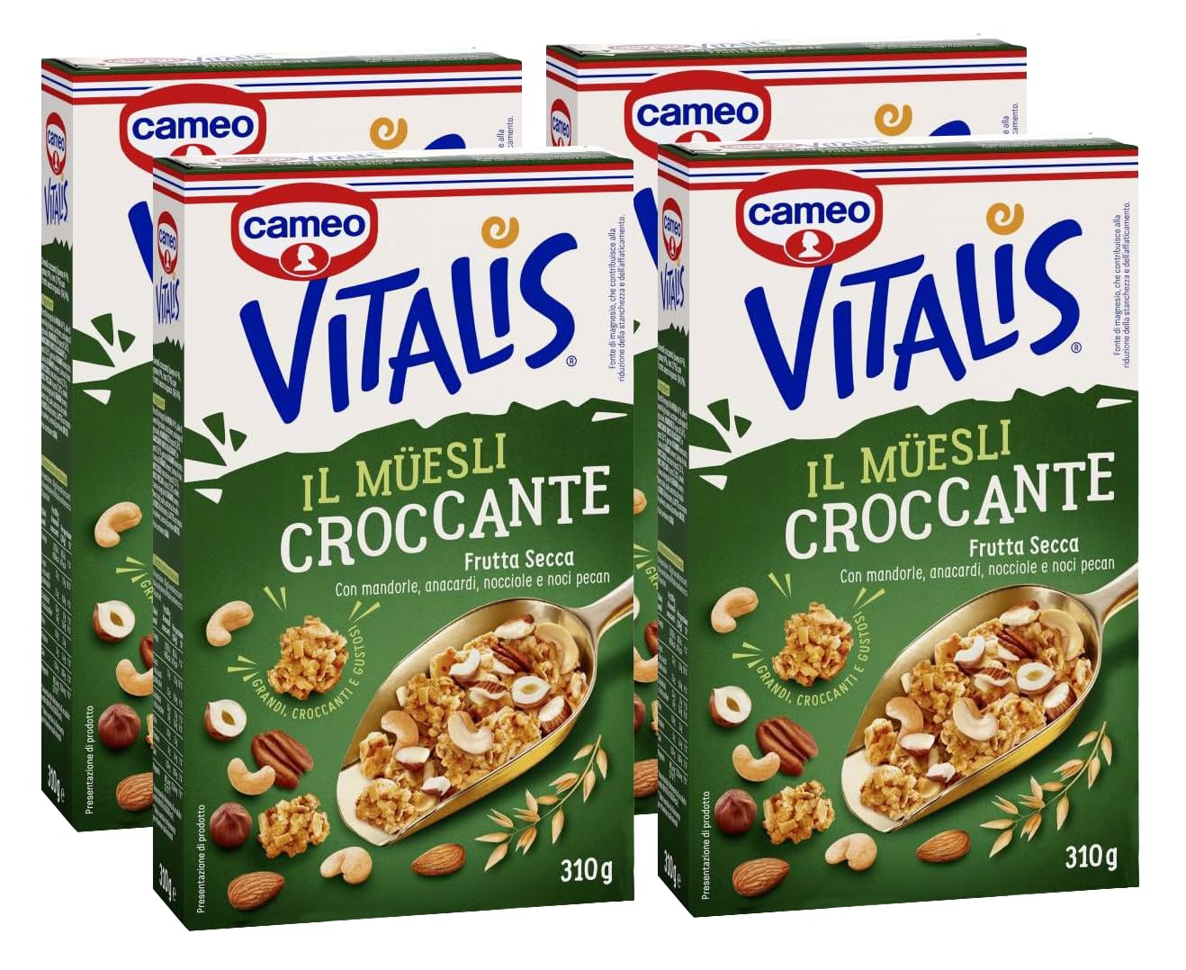 4X Cameo Vitalis Muesli Croustillant Fruits Séchés aux Amandes Noix de cajou Noisettes et Noix Pecan 310g [4 Packs]