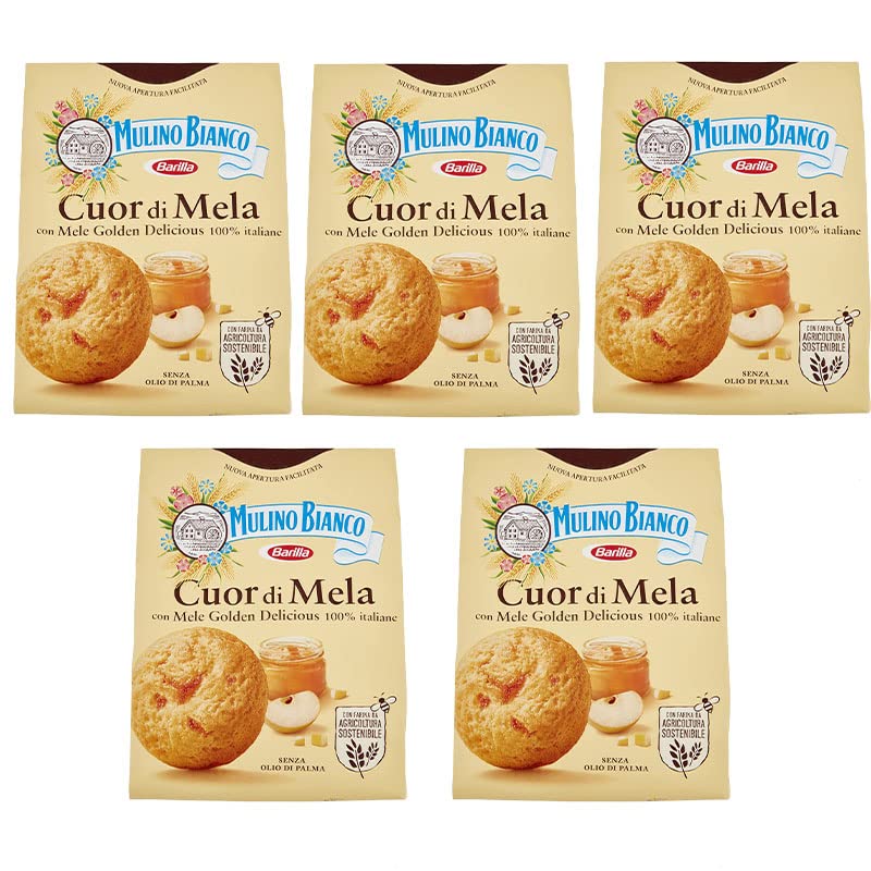 CAIYA 5 x Moulin Blanc Apple Heart Biscuits with Apples 100% Italian Without Palm Oil Breakfast Rich in Taste 300 g 5 Packs