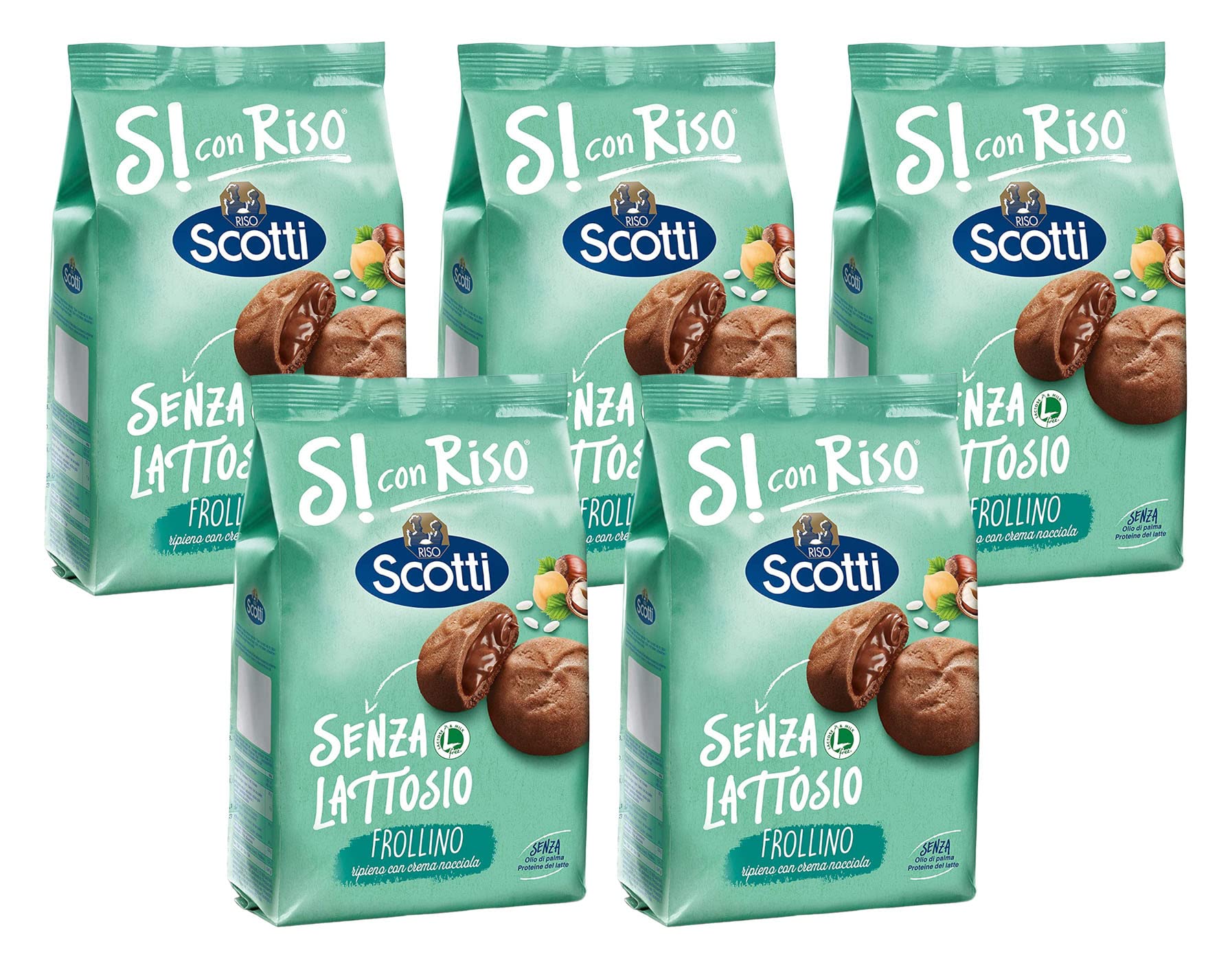 5 x Oui avec du riz Scotti, Goloso Frollino farci à la crème aux noisettes sans lactose (Lactose Free) - 200g Petit déjeuner doux [5 Packs]