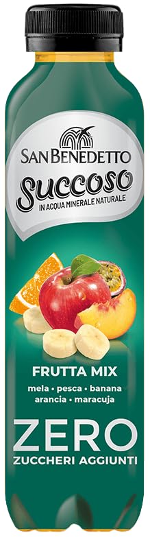Ingredients: Mineral water 68 , Fruit juice 30 (apple juice from concentrate 12 , peach puree 6 , banana puree 6 , orange juice from concentrate 4.5 , passion fruit juice from concentrate 1.5 ). Acidifier: citric acid. Stabilizer: E1450. Flavorings. Antioxidant: ascorbic acid. Sweeteners: sodium cyclamate, sucralose. Color: beta-carotene. Naturally contains added sugars. Allergens: Gluten-free. Additives: Non-alcoholic beverage made from partially concentrated fruit juice with no added sugars or sweeteners. No preservatives. Lifestyle: Gluten-free