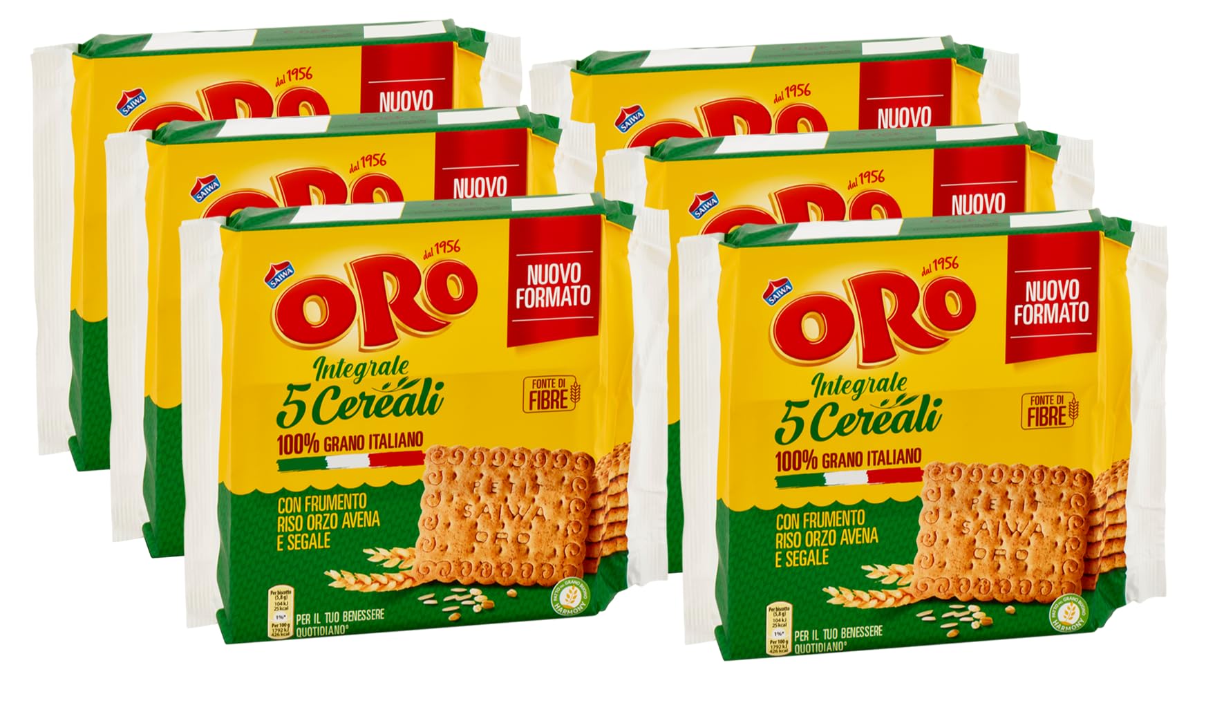 CAIYA 6 x Gold Saiwa 5 Cereal Whole Flour Biscuit with Wheat Rice Barley Oats and Signal 420g - New Format 6 Packs