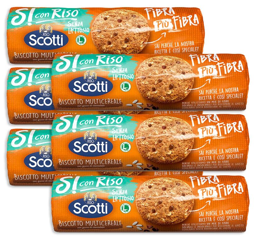 6 x Scotti Si avec riz Biscuit multicéréal avec gouttes de chocolat riche en fibres et sans lactose (Lactose Free) 250 g [6 paquets]
