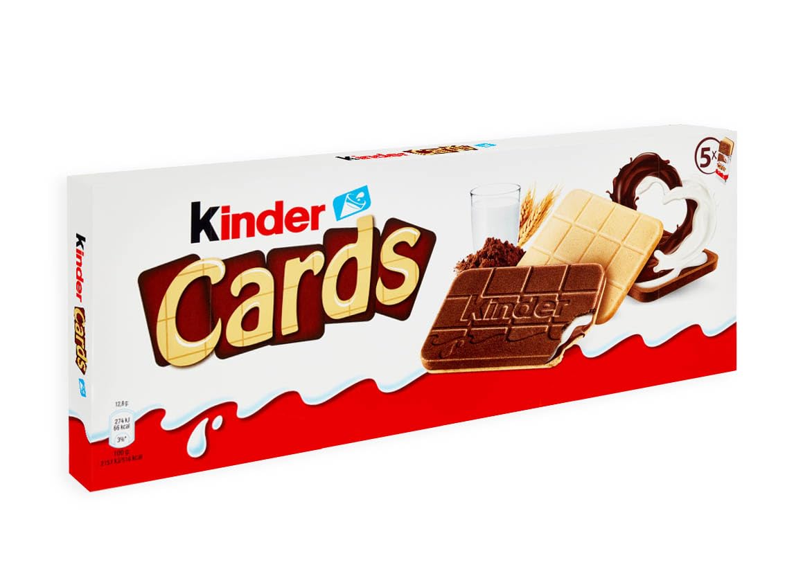 Ferrero Kinder Cards Biscuit à gaufre avec remplissage crémeux au lait et cacao Lot de 5 étuis 128 g