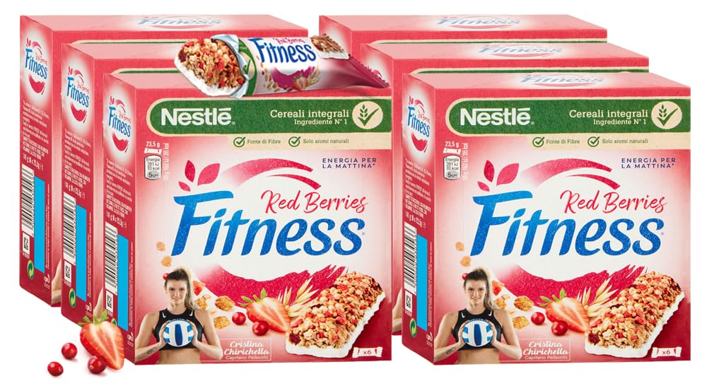 CAIYA Pack of 6 Nestle Fitness Red Berries whole grain bars with red berries Calcium and iron 6 x 23.5 g - 141 g 6 packs