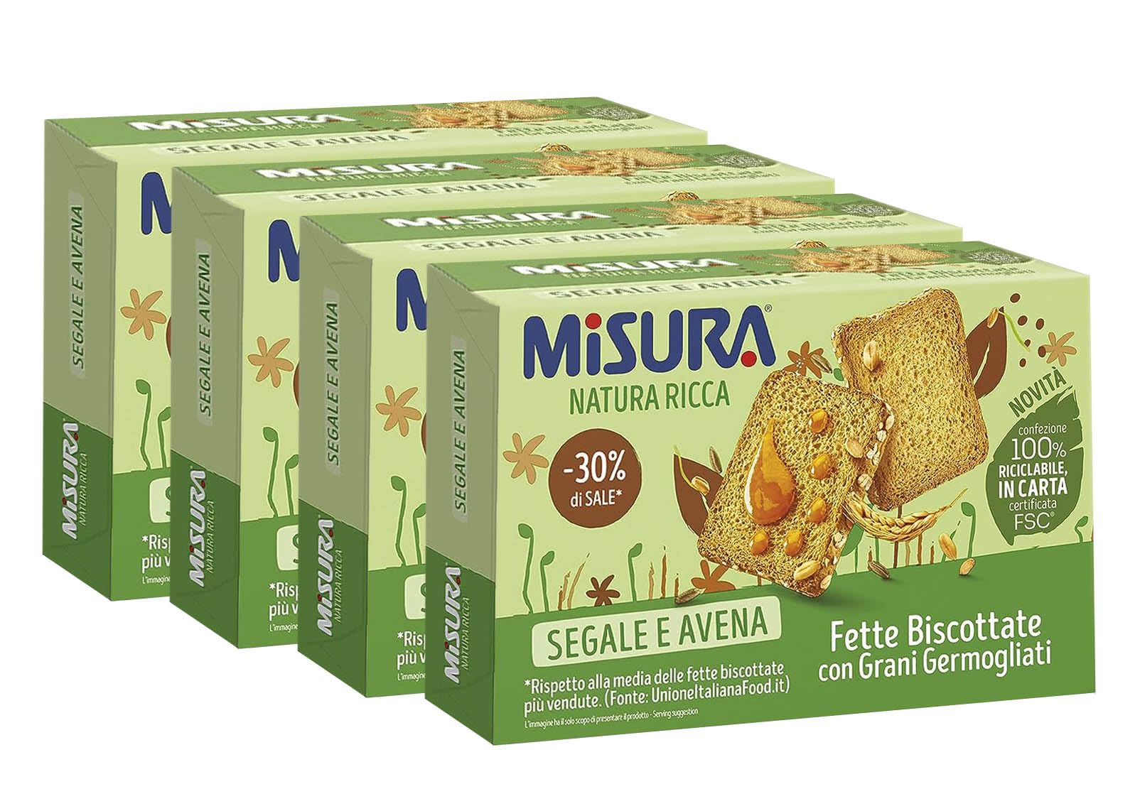 Lot de 4 tranches riches en tranches de biscuit avec des grains germés, seigle et avoine 320 g [4 paquets]