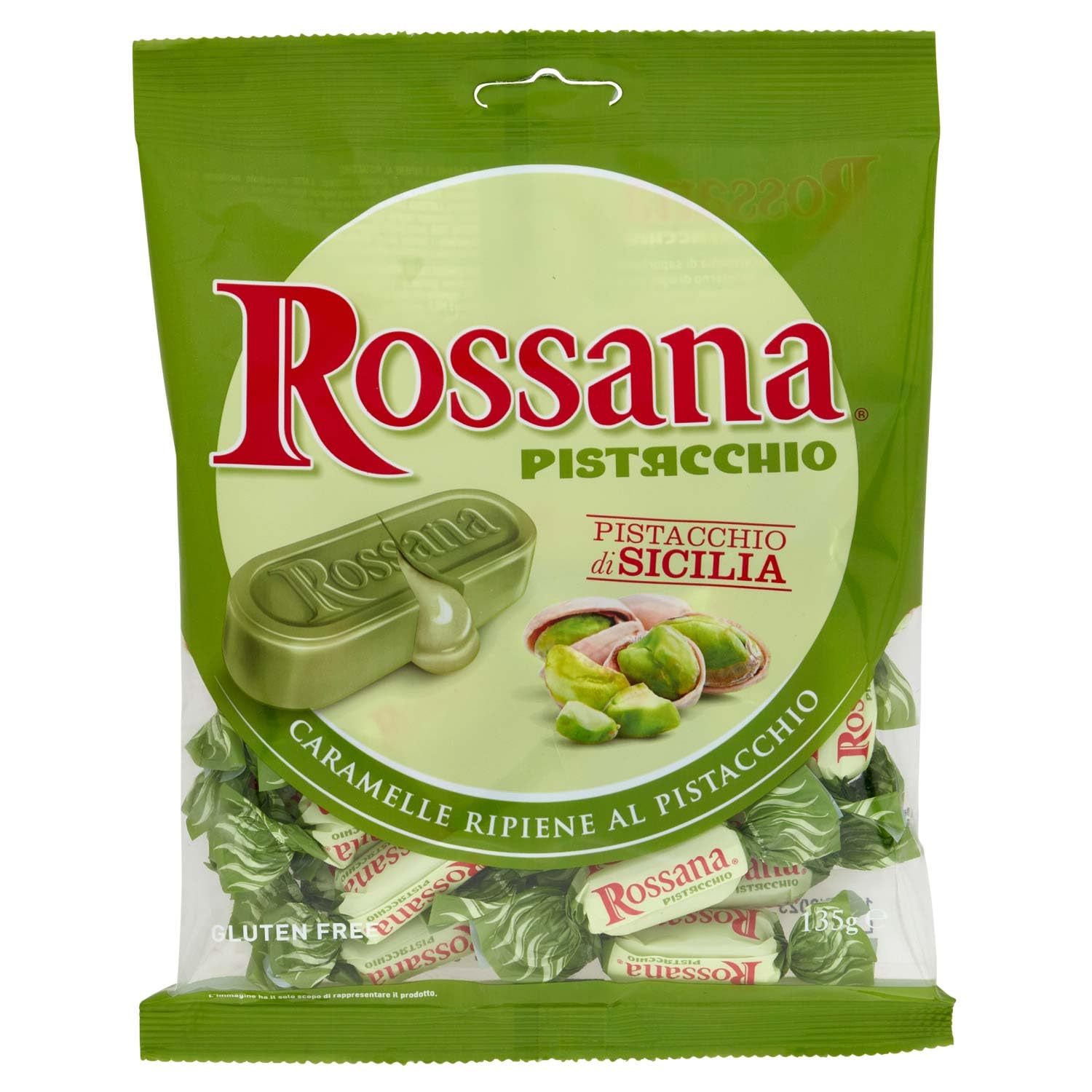 Rossana PISTACCHIO Mini - Enveloppe de 135 g de bonbons Ripiene Sfuse Incartate Sans Glutine - Fida - Nouveauté 2022