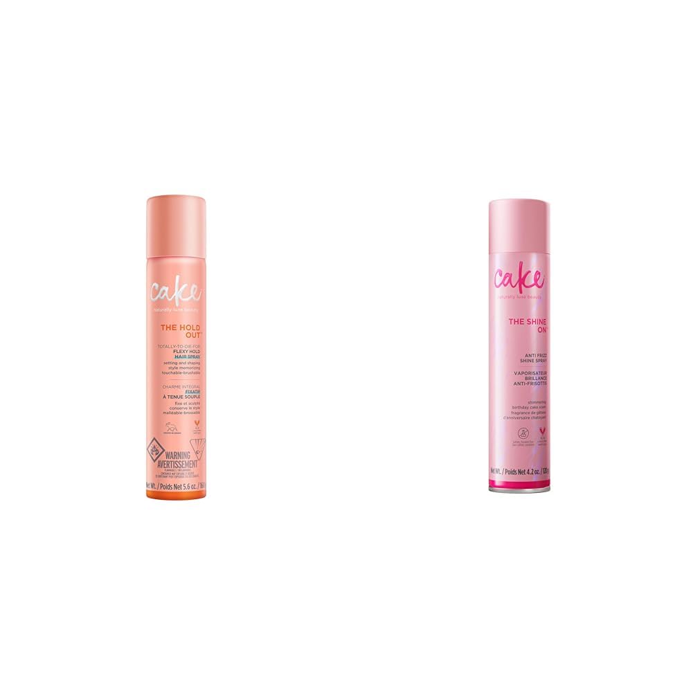 Treat your hair to flexible hold and frizz control with this Cake Beauty hair care bundle. It includes a 5.6 oz flexible hold hairspray and a 4.2 oz anti-frizz shine spray. The flexible hold hairspray provides touchable hold to shape and style your hair as desired. It can also be misted through hair for soft, lasting volume without stiffness or crunch. Enriched with vitamin E and abyssinian oil, it nourishes hair while maintaining memory of your style. It has a sweet lemon meringue pie fragrance. Complementing it is the anti-frizz shine spray, which seals the hair cuticle with oils like safflower, sweet almond, moringa and argan. This weightless spray delivers mega shine and shields hair from humidity for up to 48 hours of frizz defense. It leaves hair smooth and sleek with a decadent birthday cake fragrance. Both products are formulated without parabens, phthalates, sulfates or talc. Instead, their natural ingredients provide performance along with hair-loving nourishment. Use them together to shape your style with flexible hold and touchable volume, while defending against frizz for hair that stays sleek and smooth.